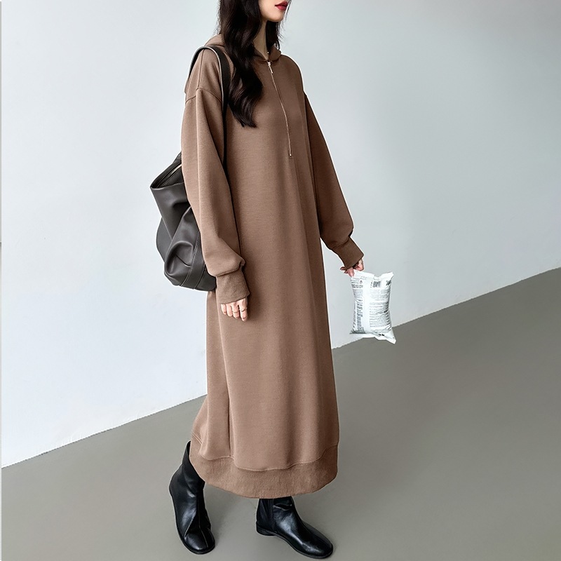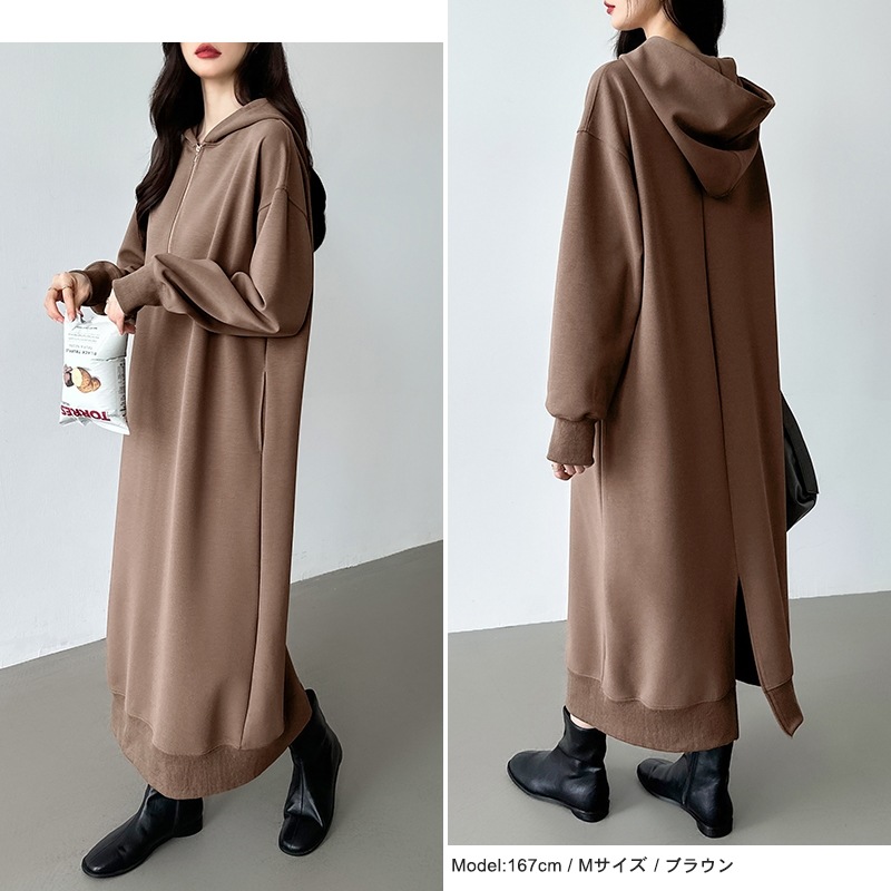 パーカーワンピース ハーフジップ ロングワンピース ワンピース パーカーワンピース 長袖 レディース スリット パーカー ロング 大きいサイズ ポケット付き スウェット