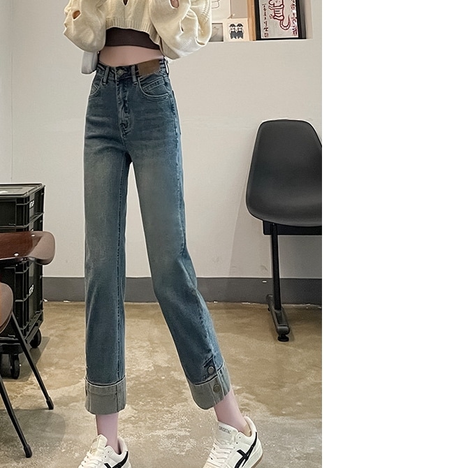 デニムパンツ ヴィンテージジーンズ女性ルーズ2024新しいハイウエスト9点弾性ストレートズボンの秋 デニム ジーンズ