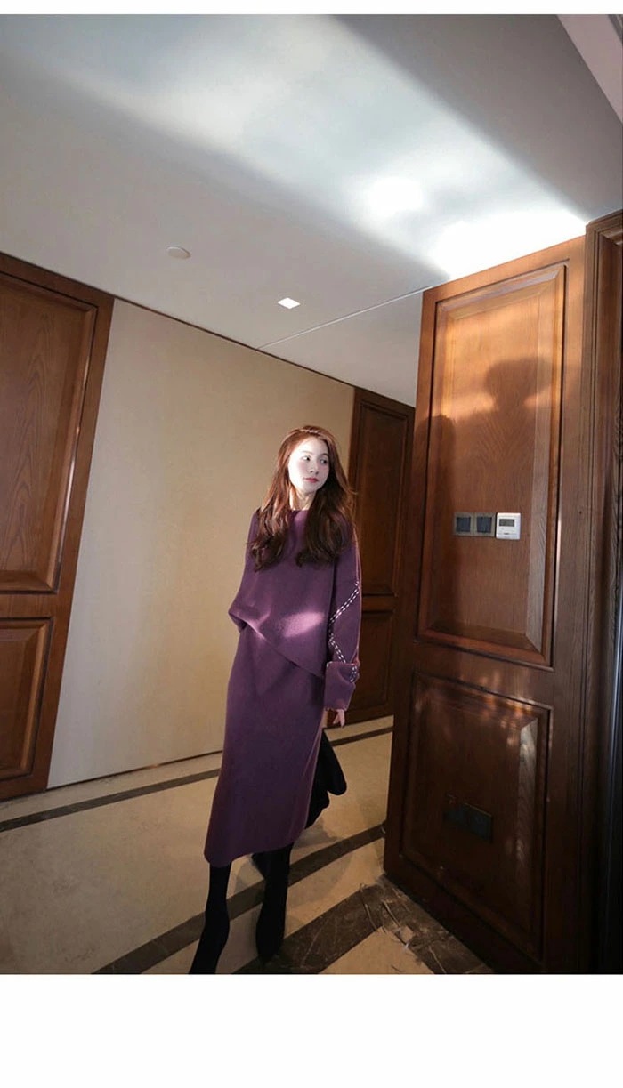 オフェス ニットセットアップ 韓国 スカート セーター きれいめ 長袖 レディース 秋冬ニットスカート セットアップ ロング丈 2点セット オフェス ニットセット スカート ニットスカート セーター 無地 エレ