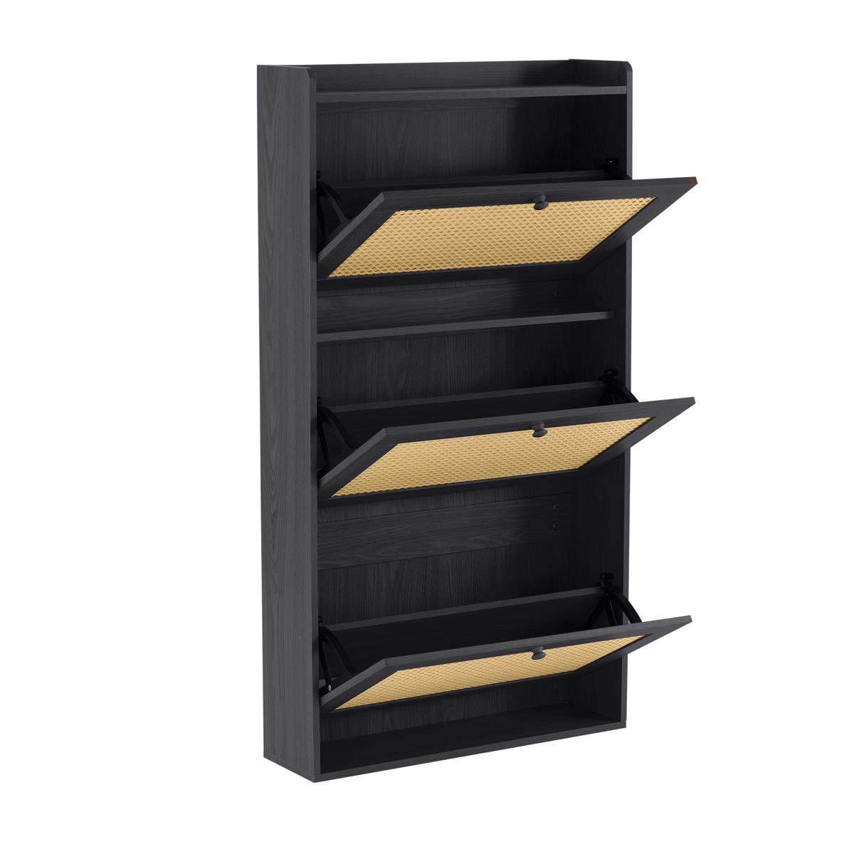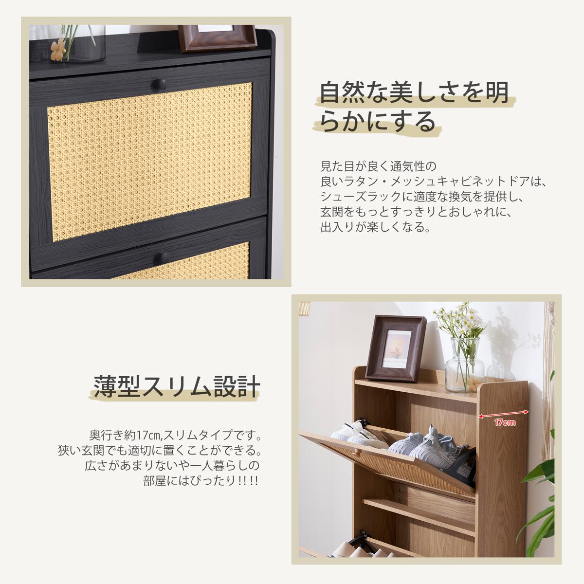 ブラック シューズラック スリム シューズボックス PE藤 ラタン 靴箱 下駄箱 スリム 薄型 3段 くつ箱 靴入れ エントランス 靴収納 靴収納棚 木製 おしゃれ 消臭 China Black
