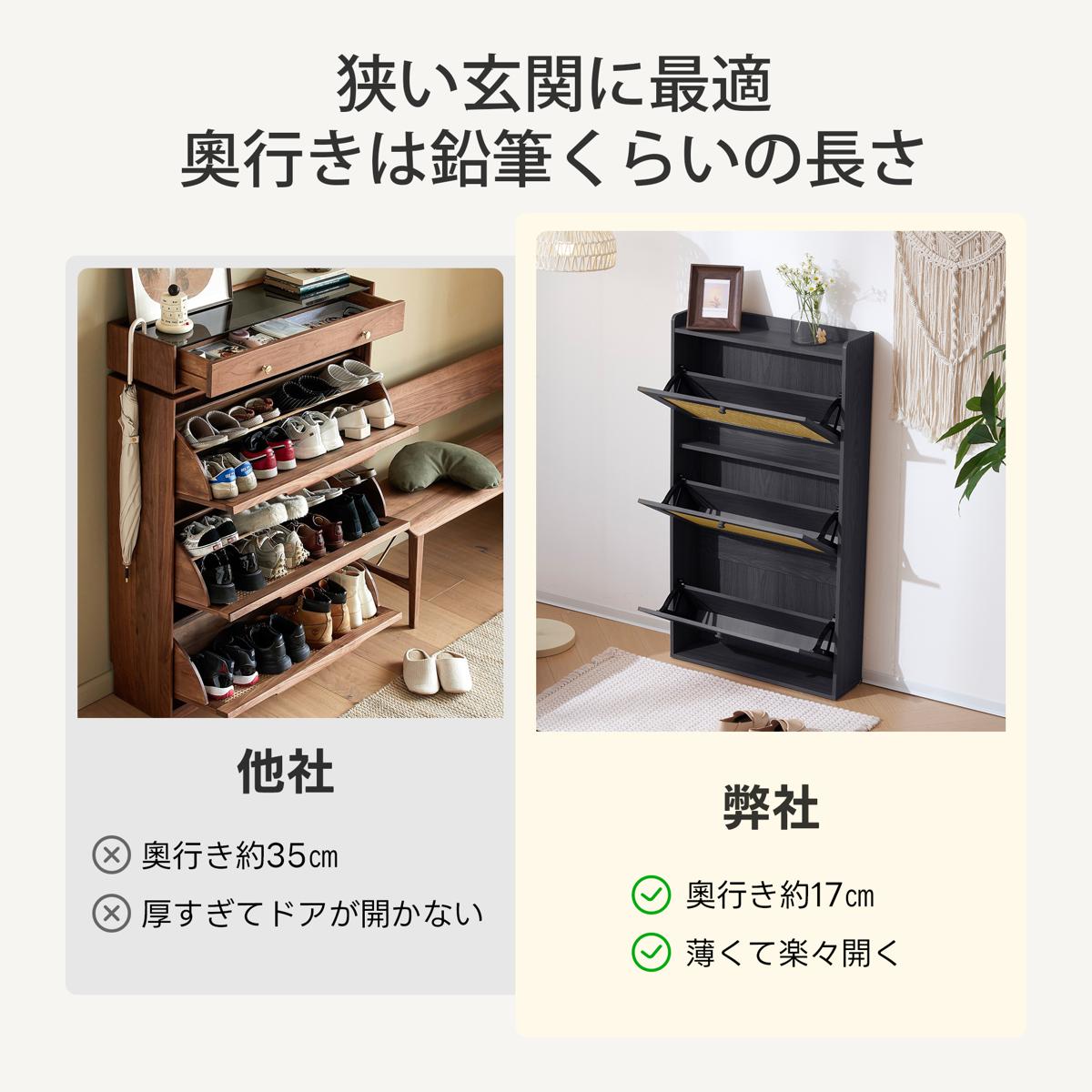 【薄型スリム設計】行き約17㎝ スリムタイプです。狭い玄関でも適切に置くことができる。広さがあまりないや一人暮らしの部屋にはぴったり