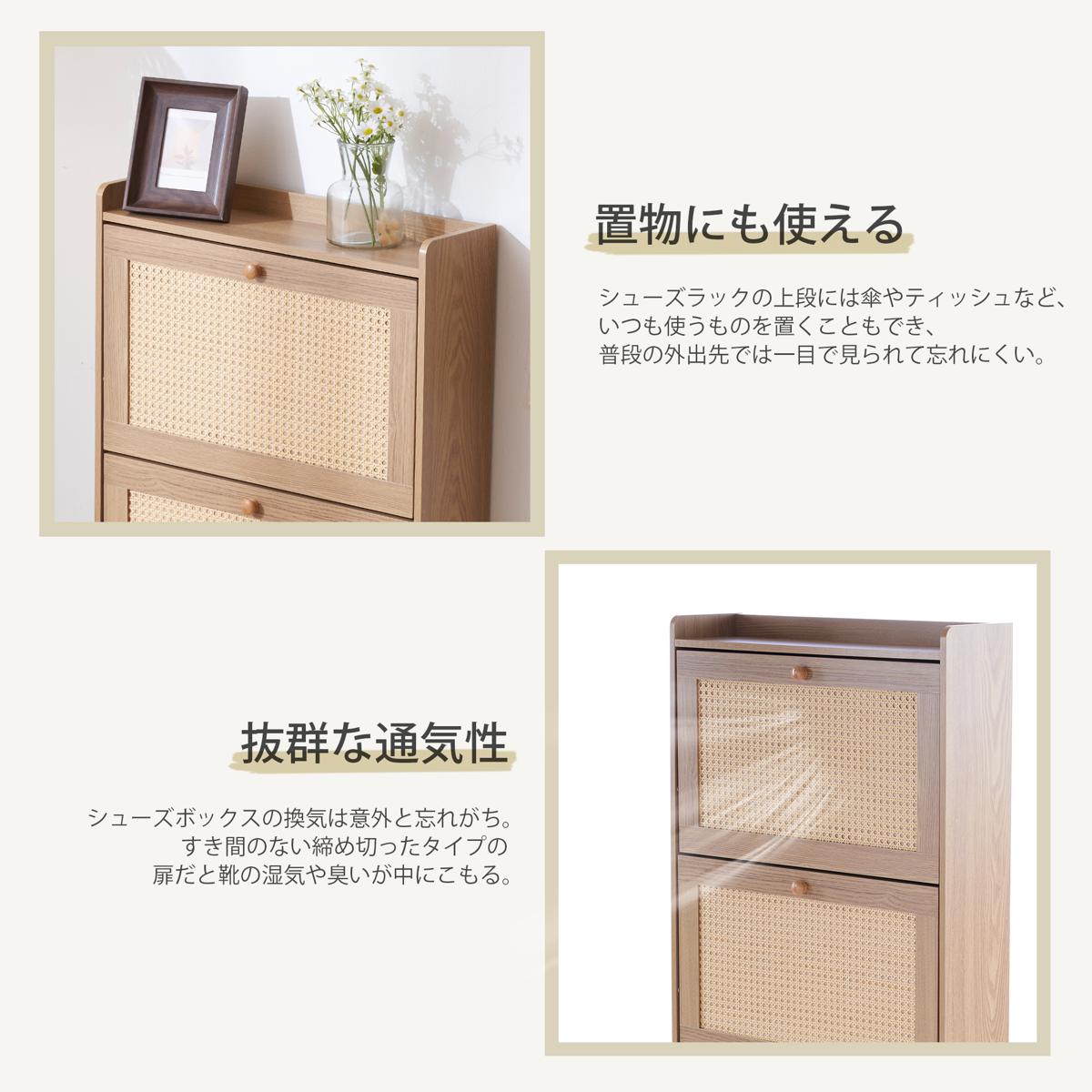 【自然な美しさを明らかにする】見た目が良く通気性の良いラタン・メッシュキャビネットドアは、シューズラックに適度な換気を提供し、玄関をもっとすっきりとおしゃれに、出入りが楽しくなる。