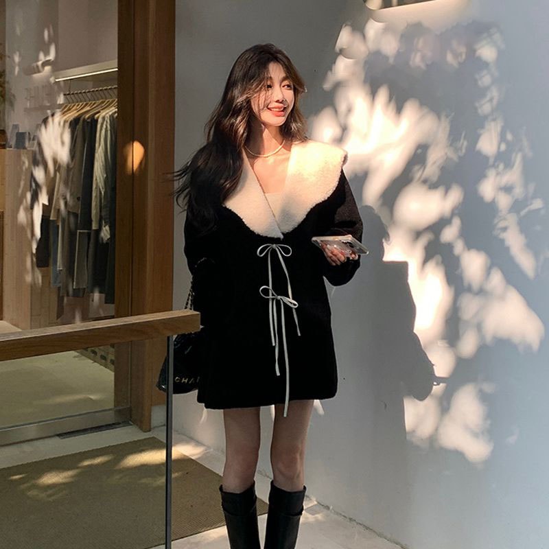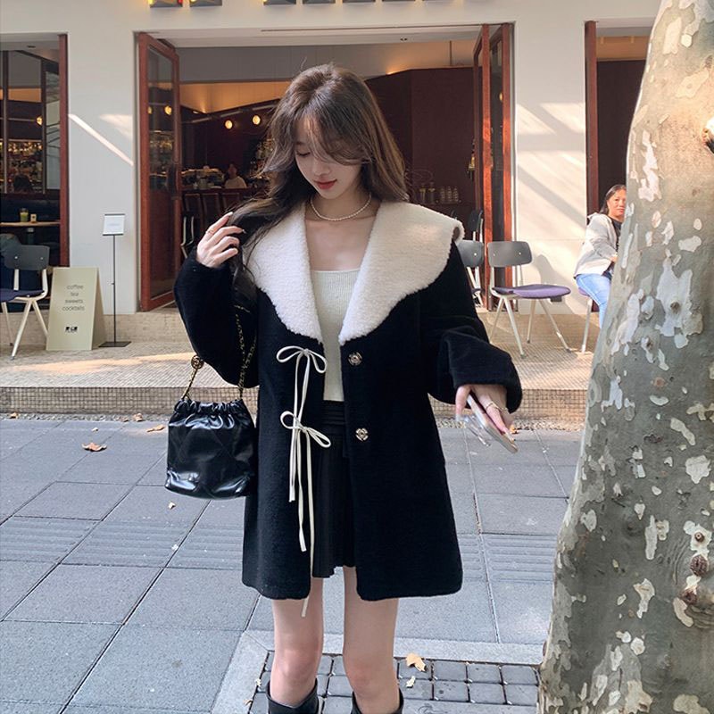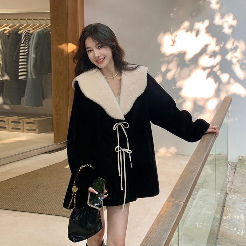 ラムズウール ファーコート 秋冬 レディース セミロング 厚手 毛皮コート 羽織り トップス ゆったり 百掛け カジュアルジャケット アウター 体型カバー