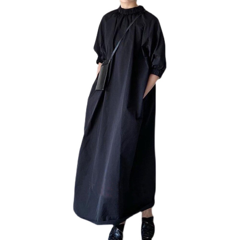 限定SALE ロング丈ワンピース 韓国ファッション 着痩せ 無地 可愛い ゆった シャツワンピ