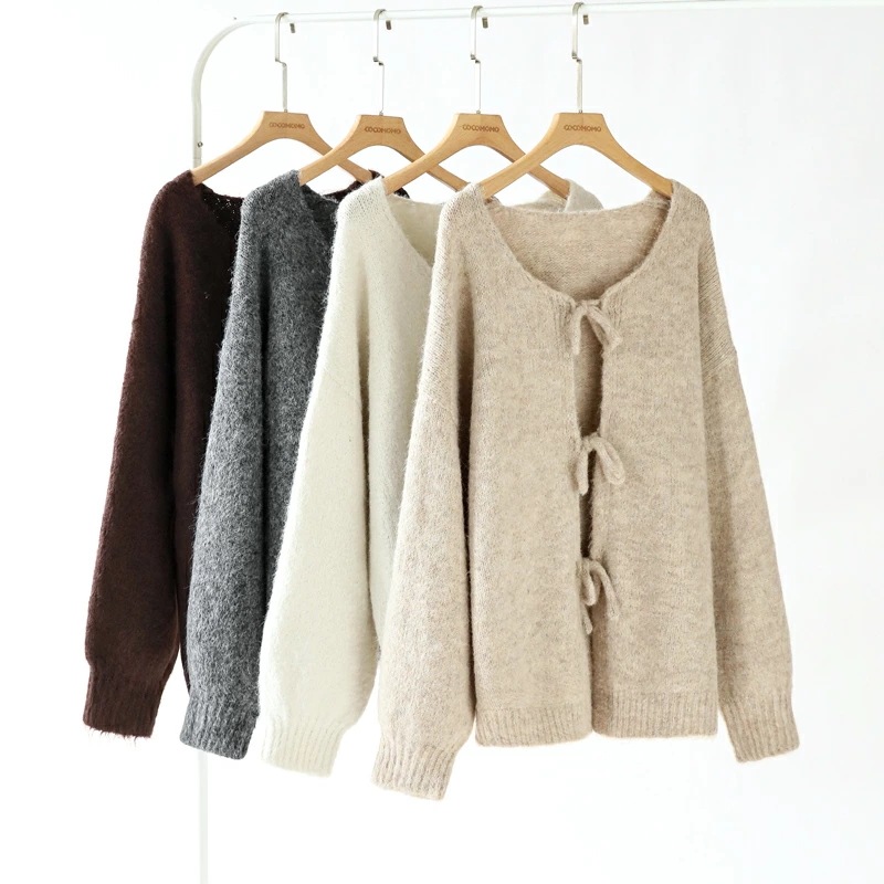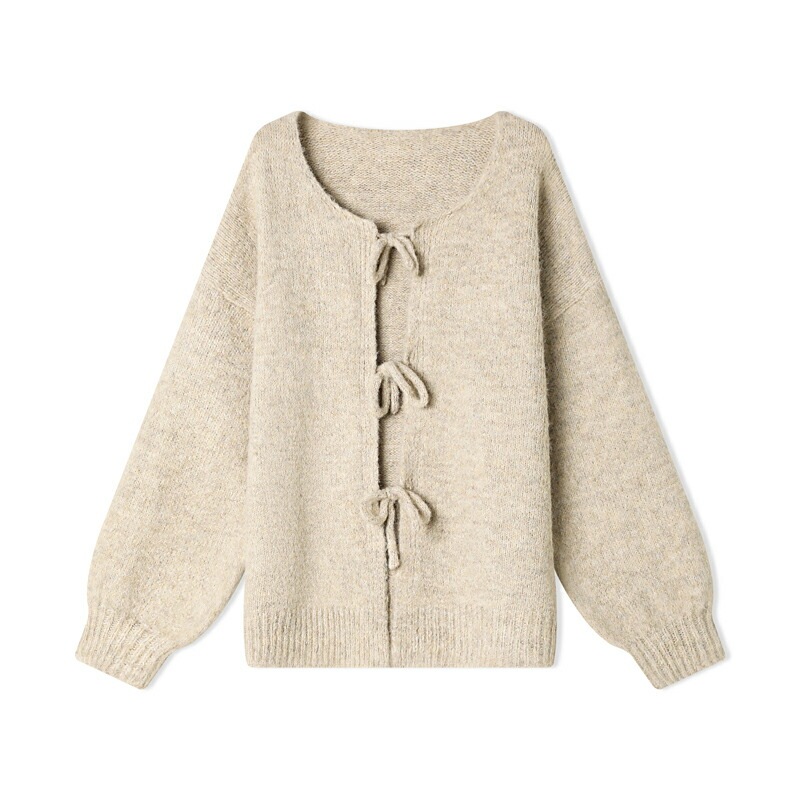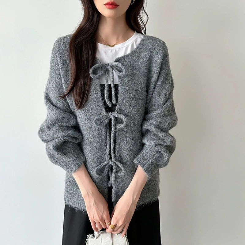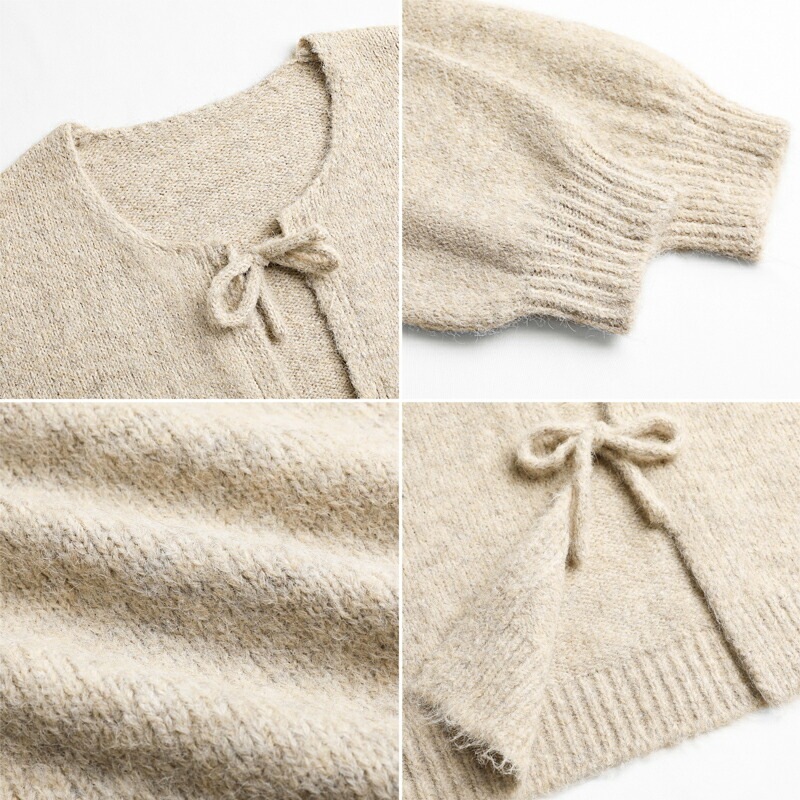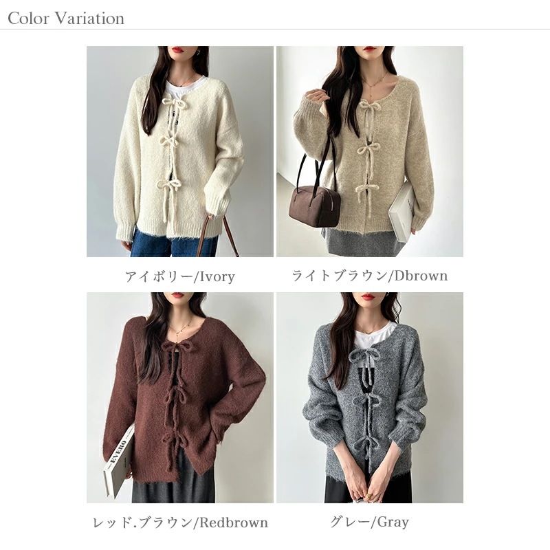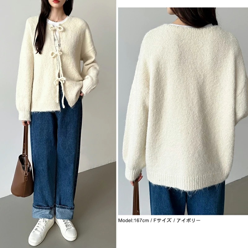 前後2way リボンカーディガン ニットカーディガン カーディガン リボン ニット レディース ドロップショルダー ラウンドネック トップス 長袖 ボレロ