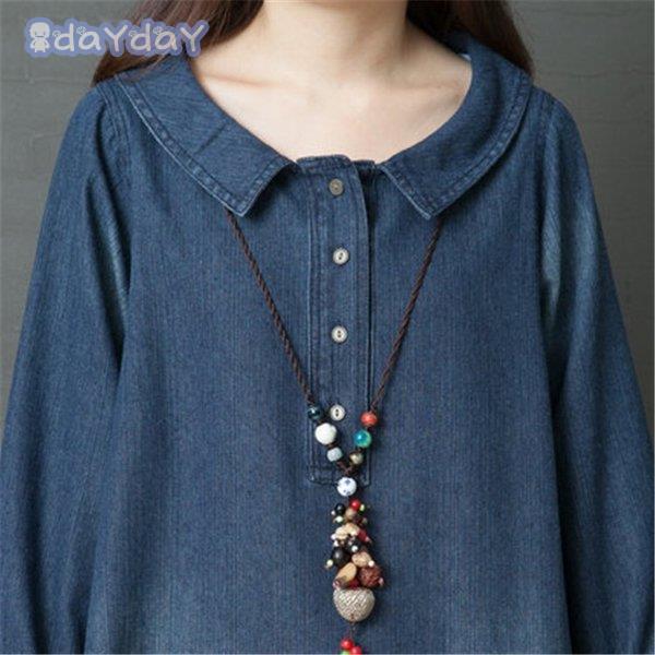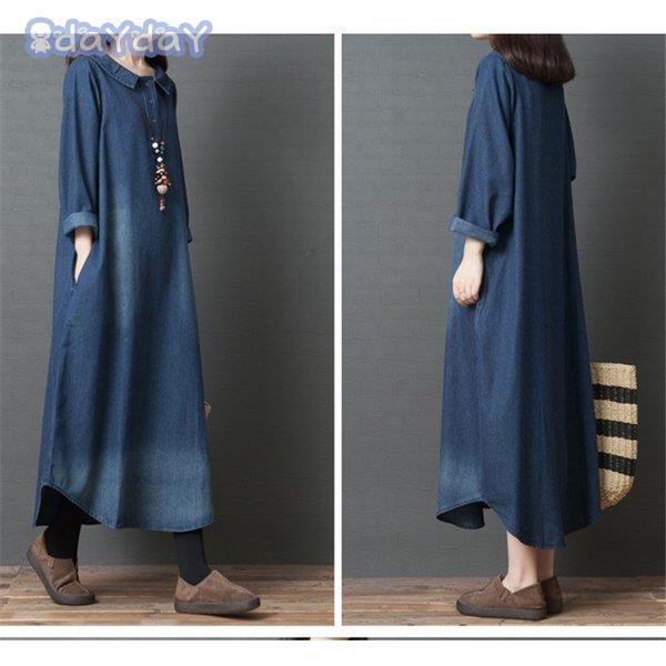 マキシ デニム レディース デニム ロング 長袖 ゆったり 体型カバー ロング 森ガール 春 30代 40代 着痩せ ロングスカート