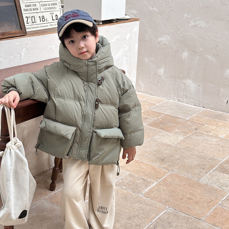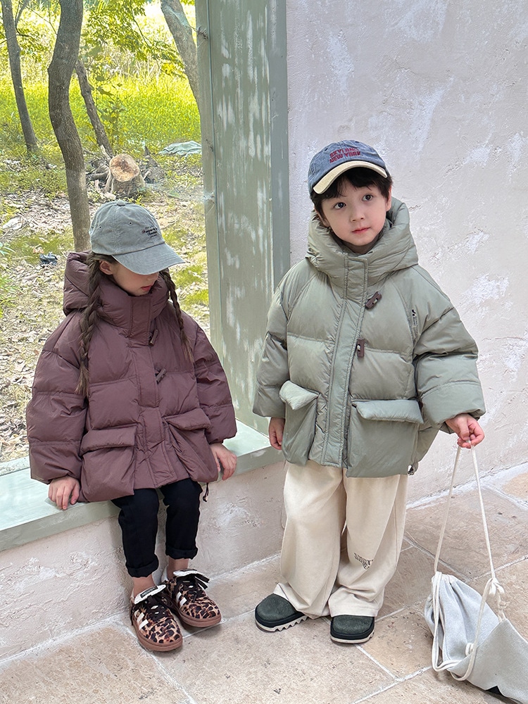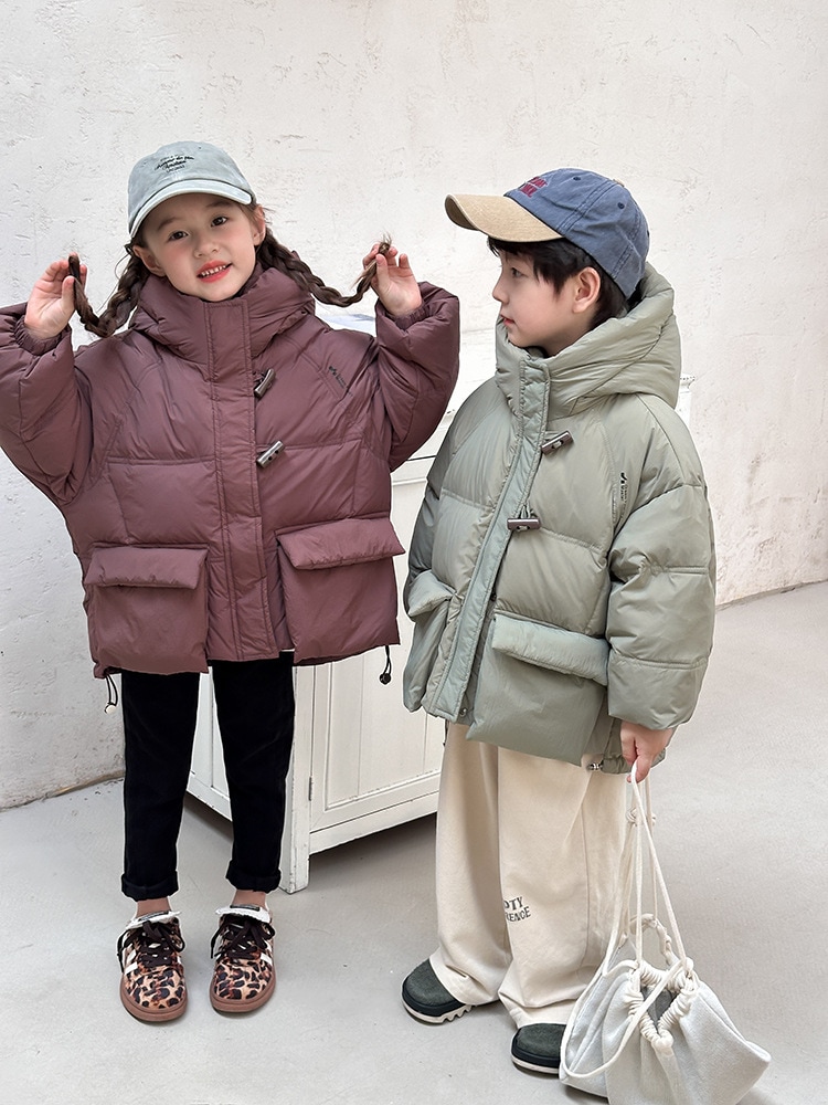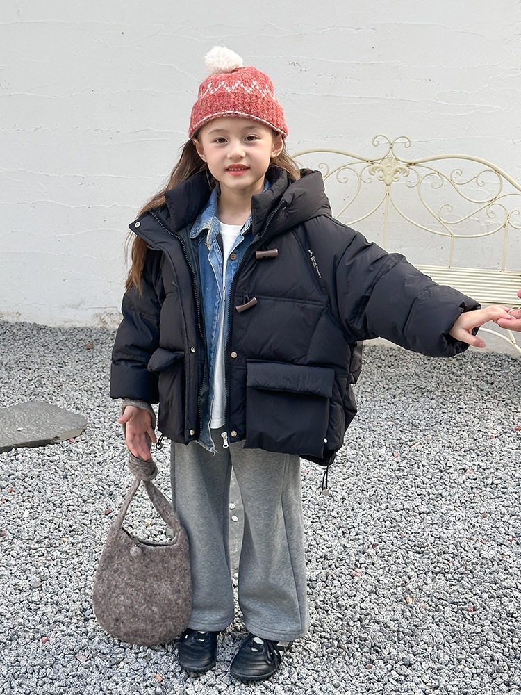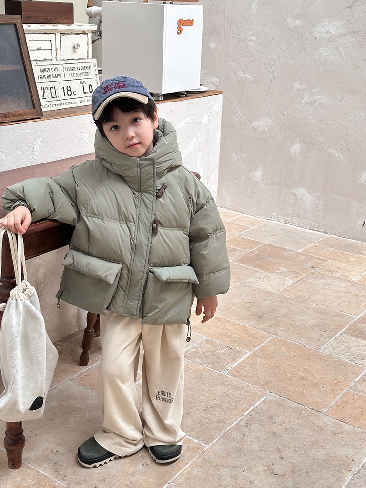 子供の中で大童の韓国版牛角ボタンダウンジャケットを厚くした秋冬の新しい男女の子供用パンコート アウター