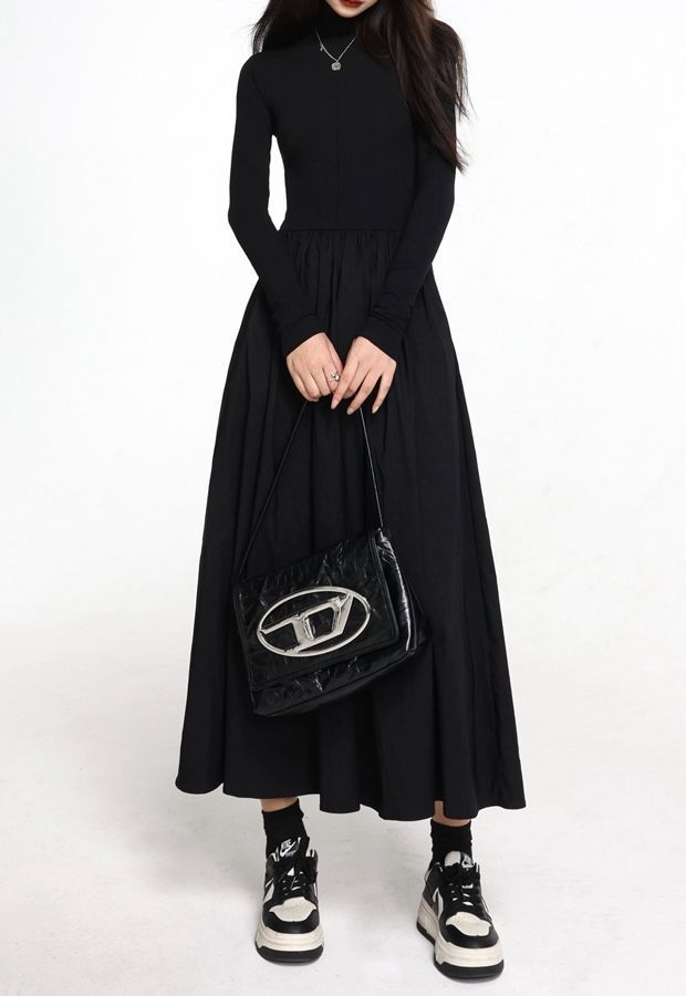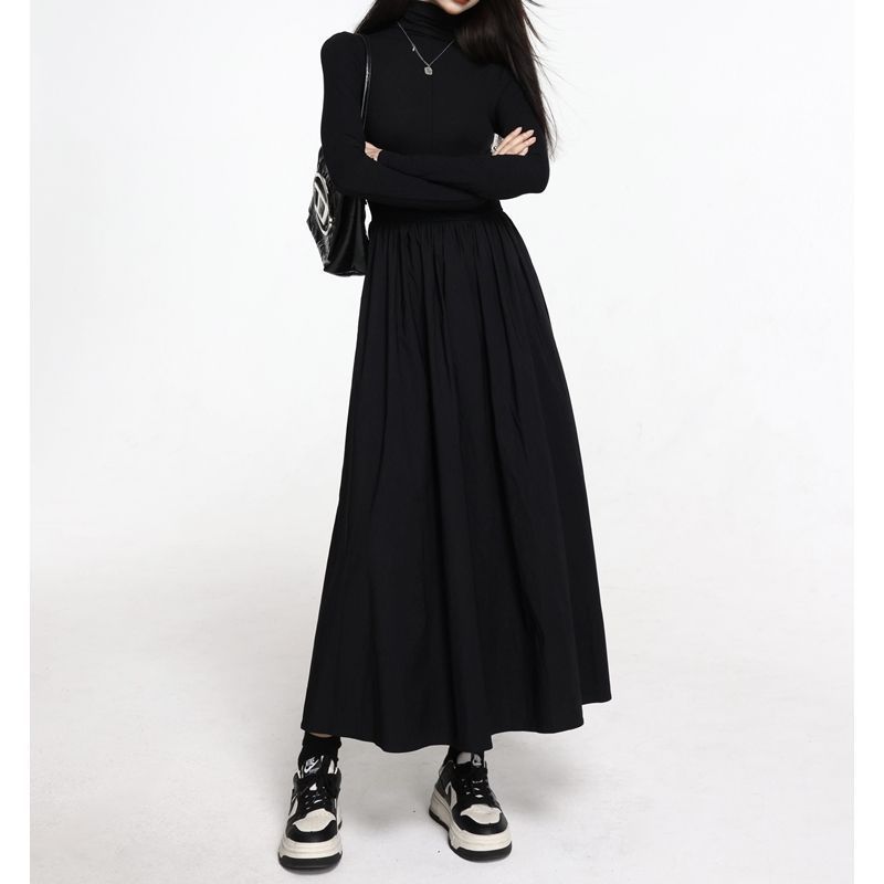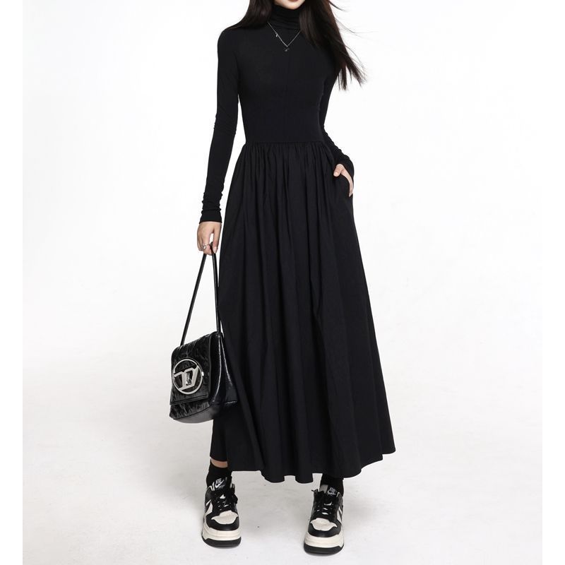 タートルネックニットワンピース 無地 マキシ丈 長袖 ニットワンピ シンプル ニットワンピース ニットワンピ