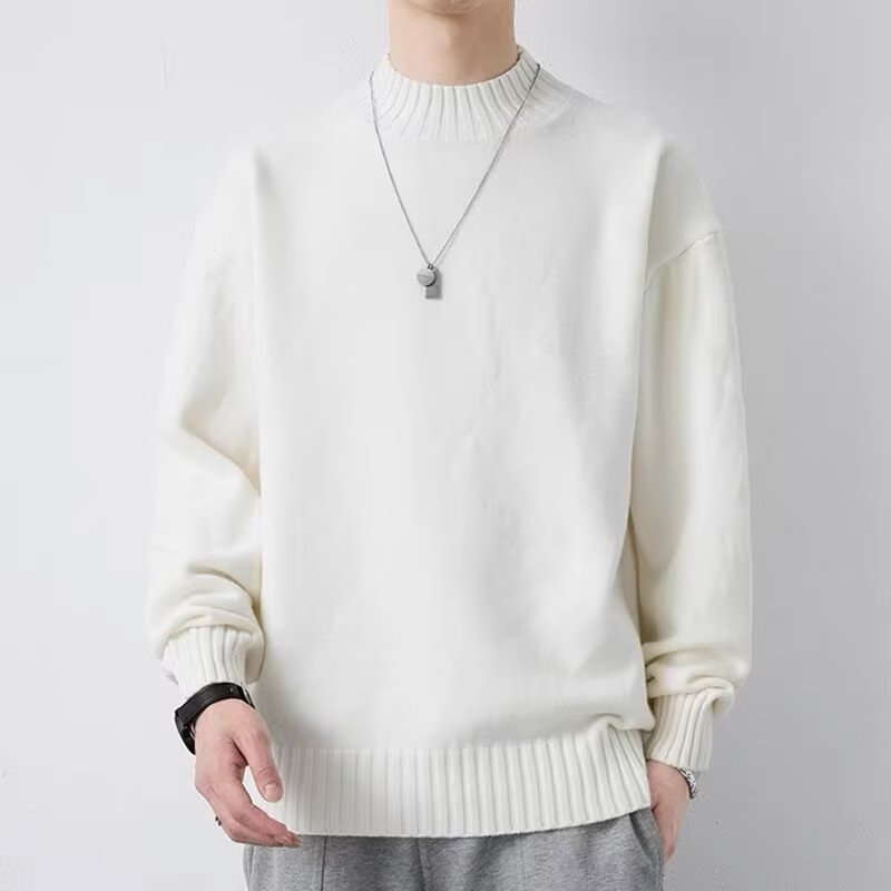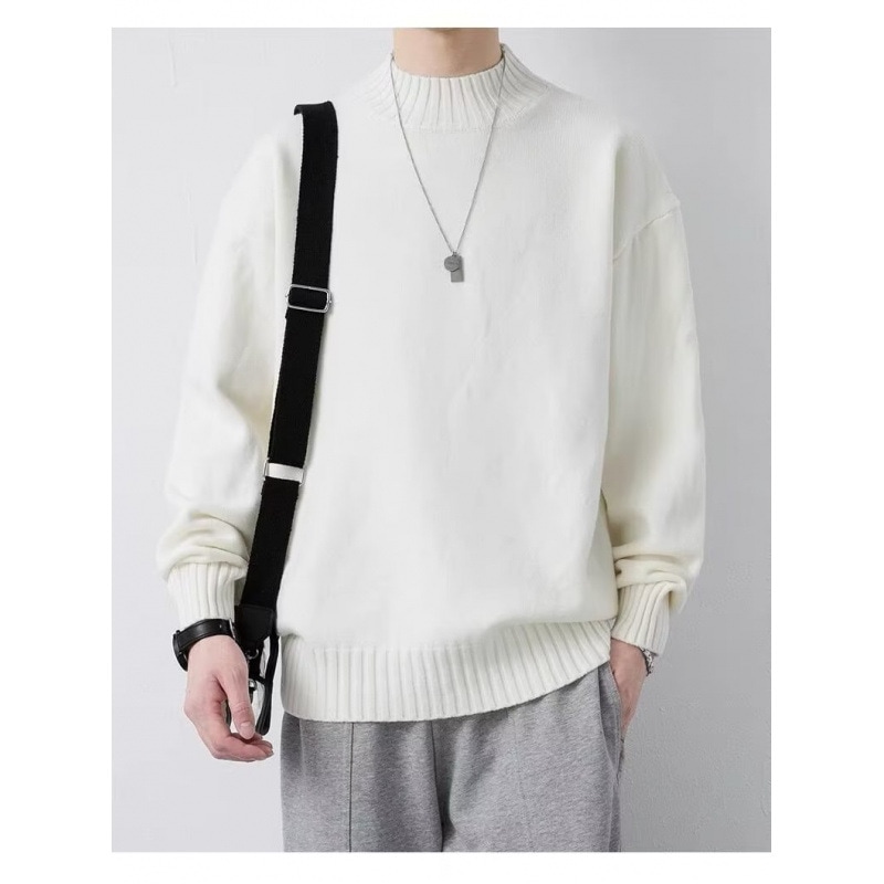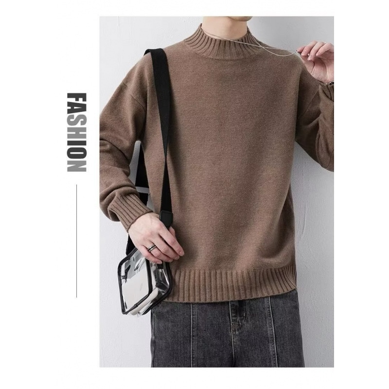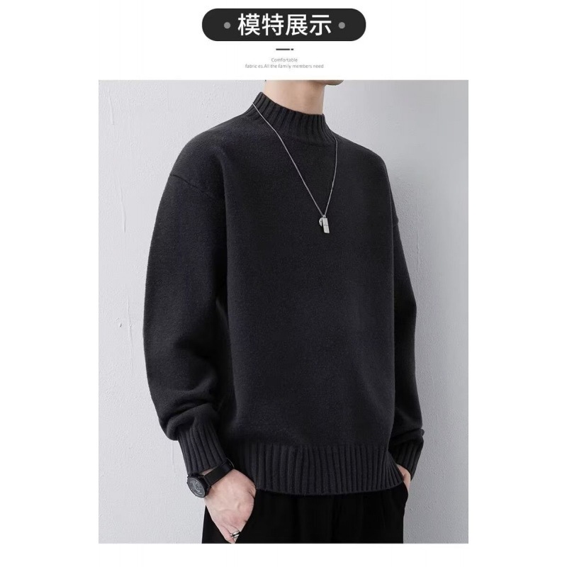 ニットセミタートルネックジャンパーメンズ秋冬新作ルーズニットセーター中わた増毛襟暖かい学生底上げシャツ ニット セーター