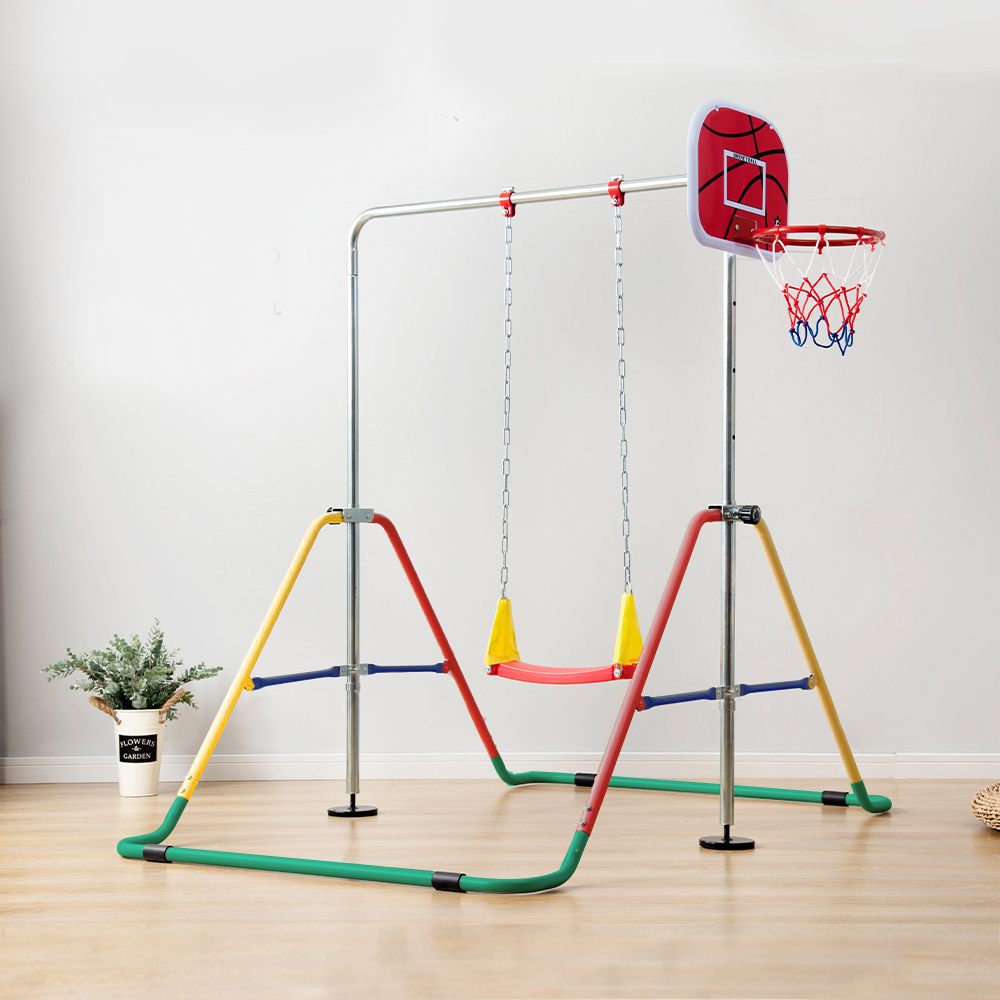 鉄棒 室内 屋外 折りたたみ 5段階高さ調節 鉄棒ブランコバスケットボール子供用 キッズ こども 鉄棒練習 体育 運動 ぶら下がり鉄棒 折りたたみ 多機能 てつぼう Colorful Metal