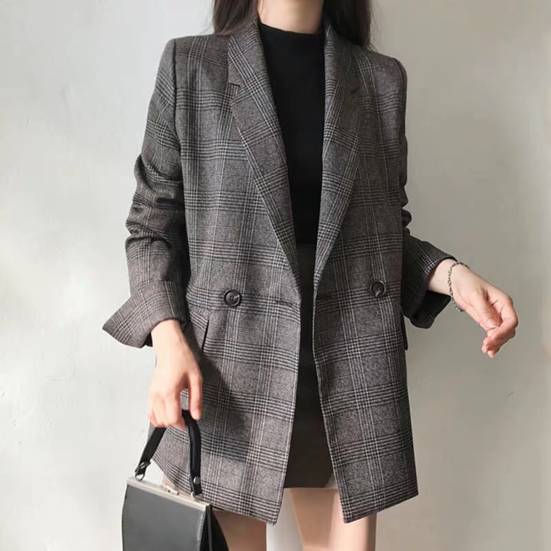 春 人気 スーツジャケット 日韓ファッション チェックスーツトップス レトロ ゆったり 百掛けアウター トレンチコート ショートコート着痩せOL通勤入園式 入学式 卒園式 カジュアルスー