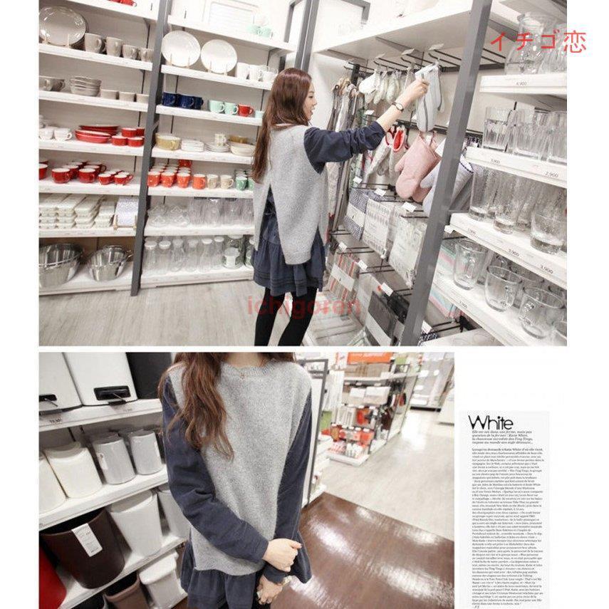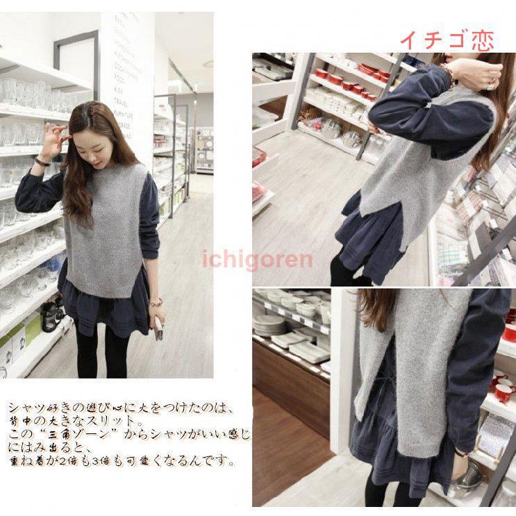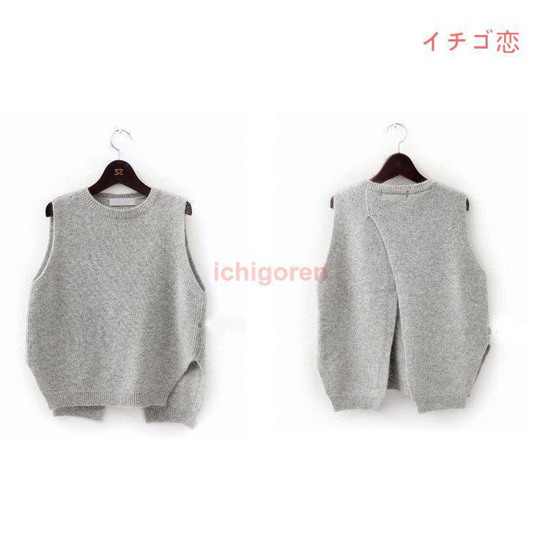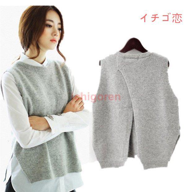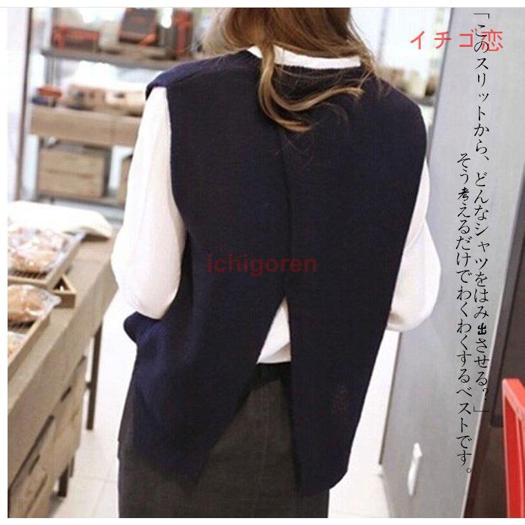 春の新作 うしろでシャツとの重ね着をあそぶニットベスト レディース ニット ウェア ニットソー セーター ブラウス トップス 厚手 柔らかい ウール混 重ね着