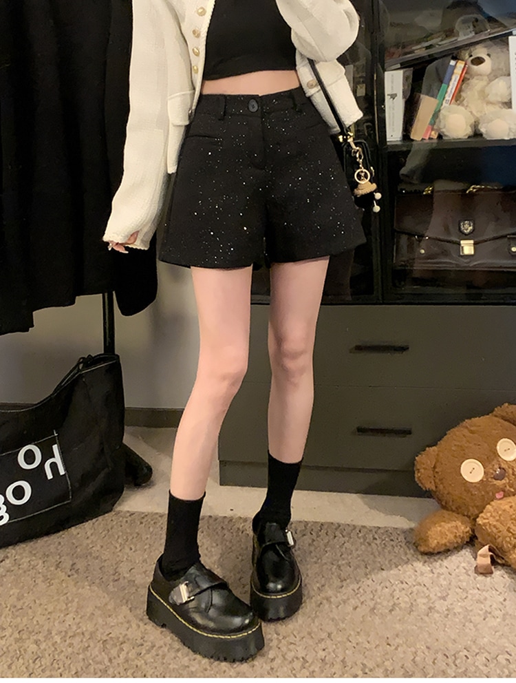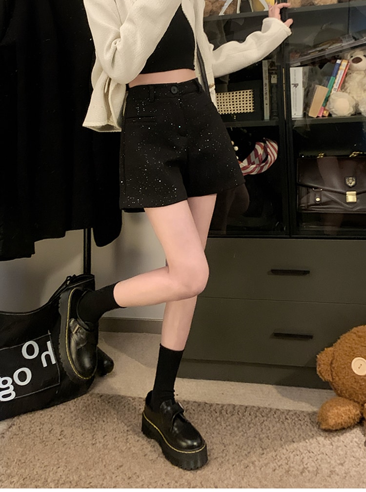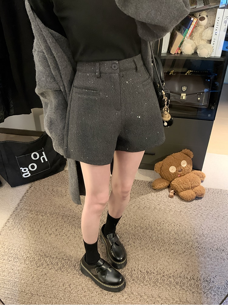 韓国ファッションショートパンツ 防寒厚手パンツシンプル ショート丈 ハイウエストショートパンツ 脚長 美脚細見え百掛けパンツ レディース ショート ハーフパンツ