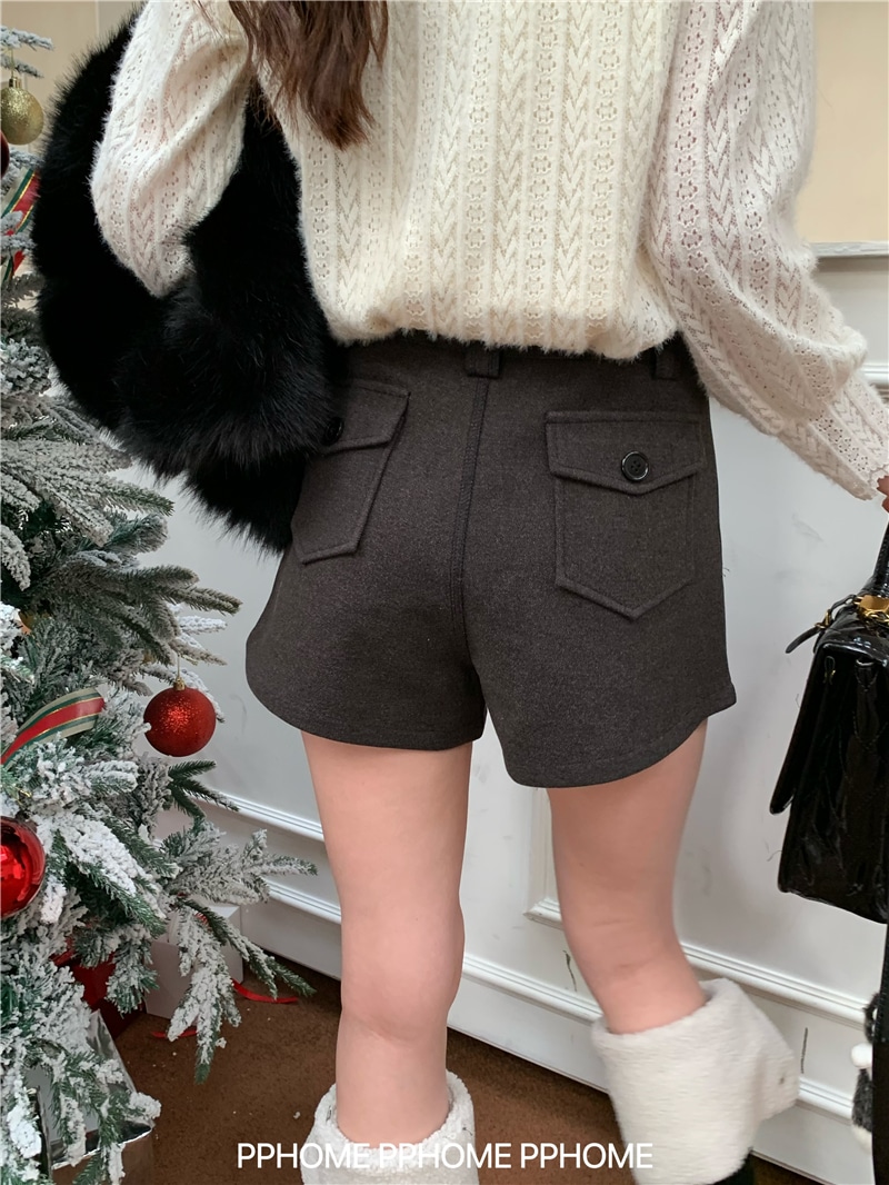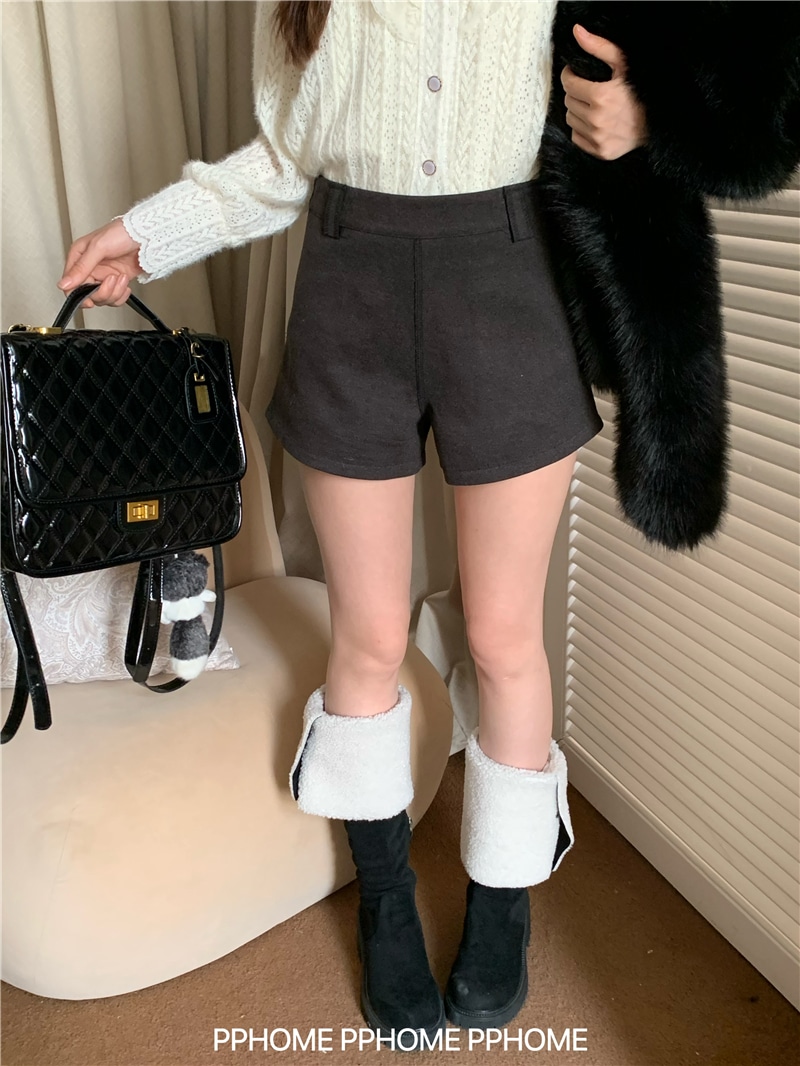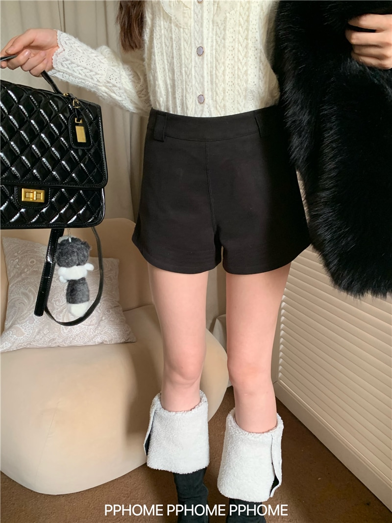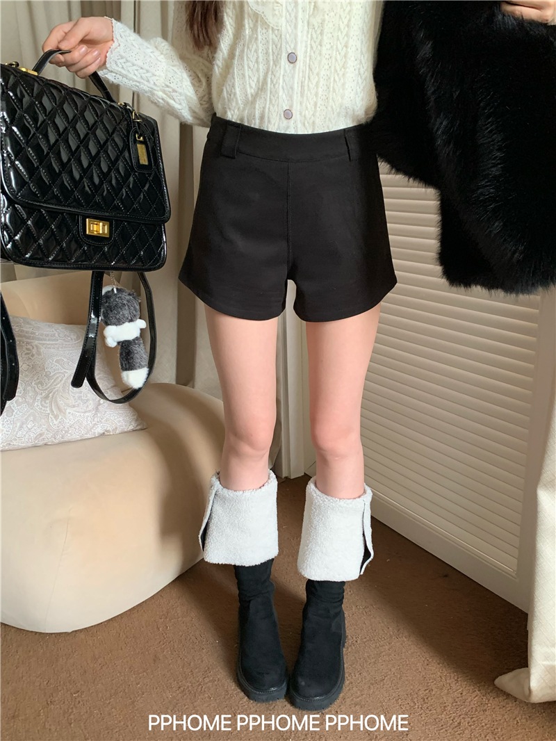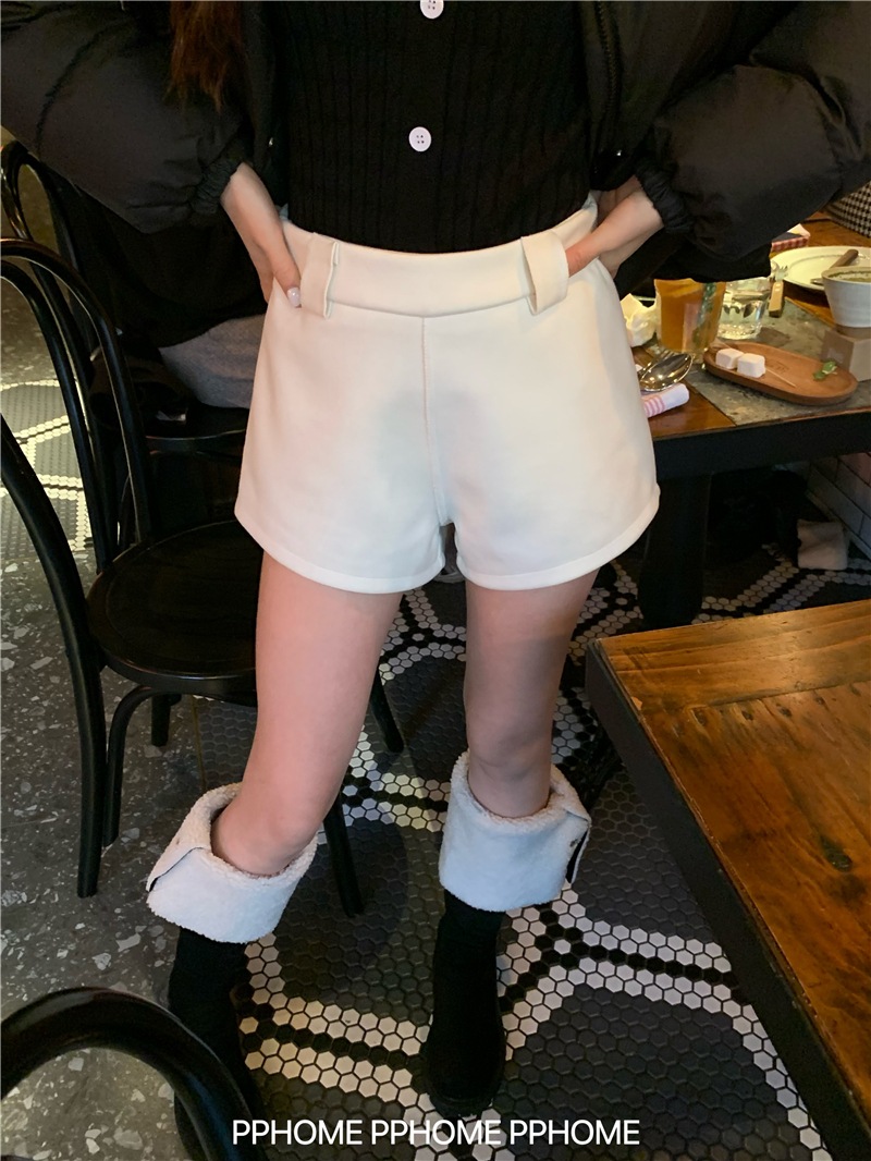 ショートパンツ 防寒パンツ Aライン ショート丈ストレートハイウエストショートパンツゆったり 脚長美脚細見え韓国ファッションパンツ レディース