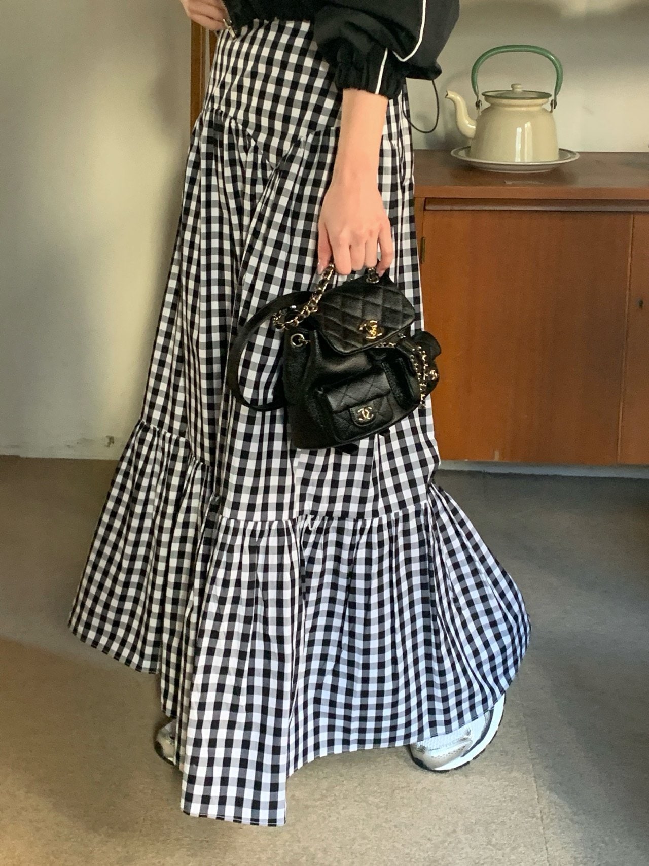 2025春新作 韓国ファッション ゆったり チェック 着痩せ スカート ハイウエスト Aライン ワ その他 スカート