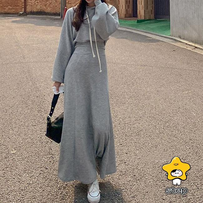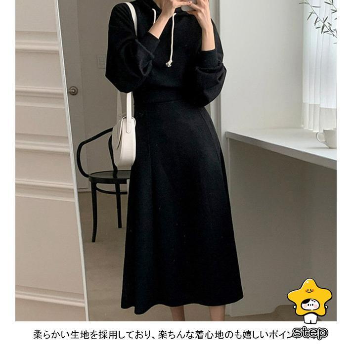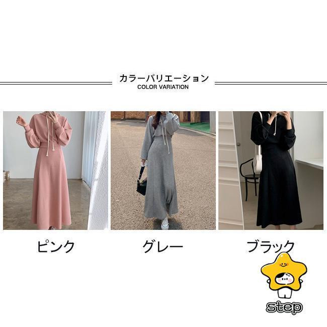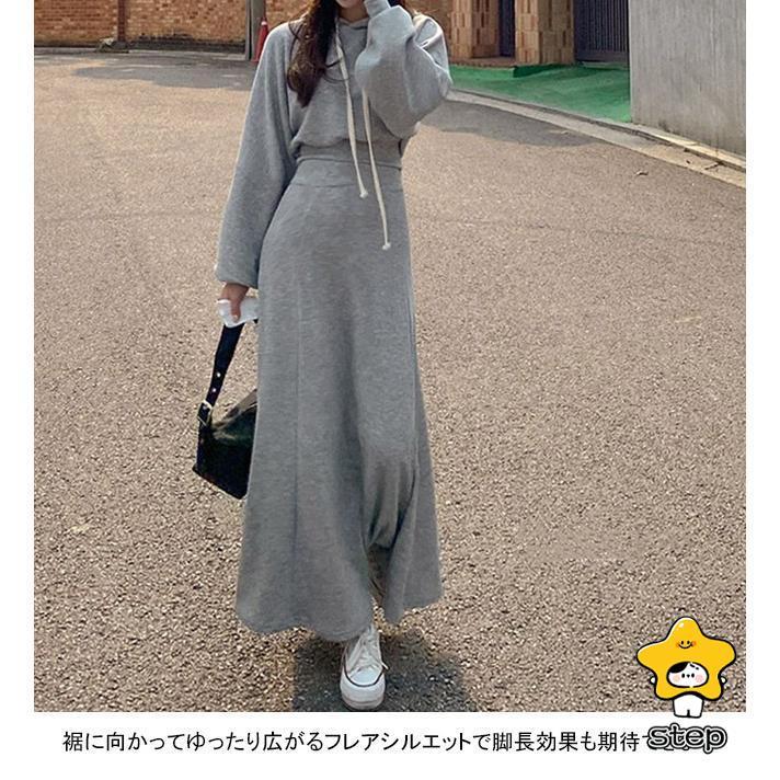 パーカーセット レディース 上下セット ロングスカート フード付き ウエストタック ポケット 柔らかい ゆったり シンプル 春秋 パーカー