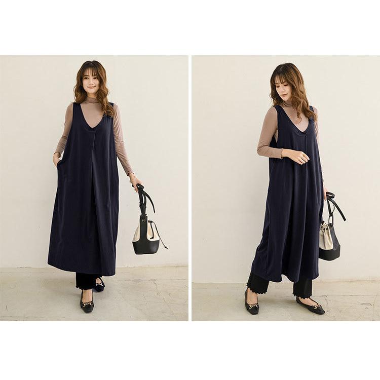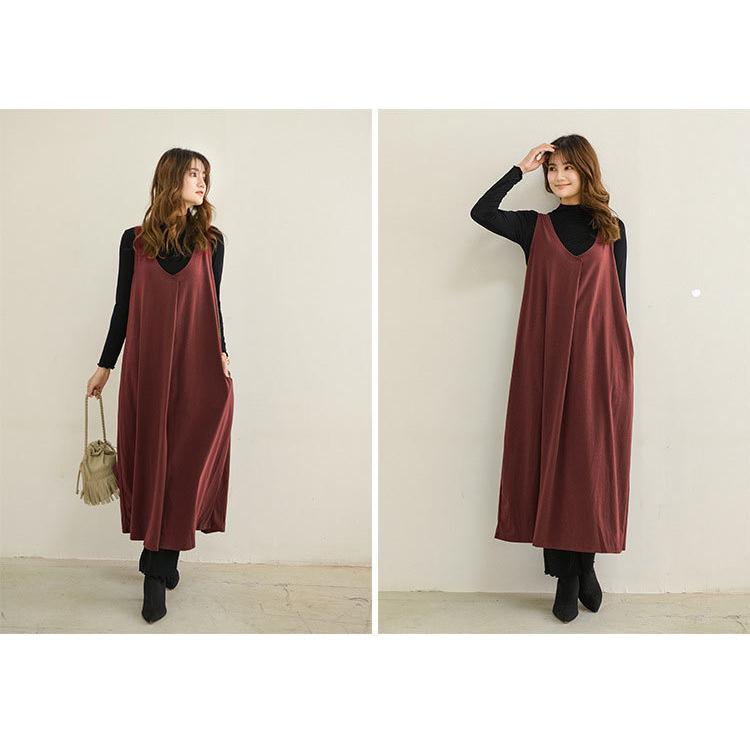 キャミワンピース ロング丈 きれいめ ジャンパースカート Vネック レディース ロングワンピース ノースリーブ サロペット オールインワン キャミワンピ