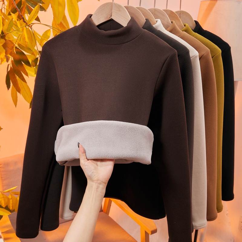 裏起毛ファッション 中わた入り冬暖かいスレッドミッドネックボトムシャツ女性長袖トップス Tシャツ カットソー