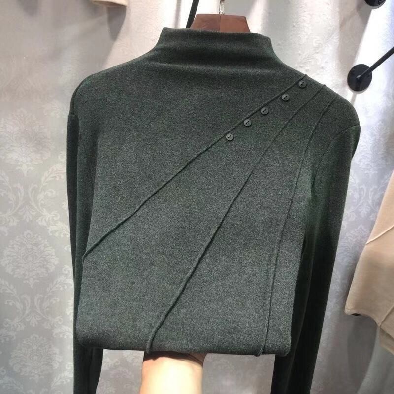 裏起毛ファッション リバーシブルデベルベットボトムシャツレディース秋冬ハーフハイネック長袖あったか中綿トップス Tシャツ カットソー