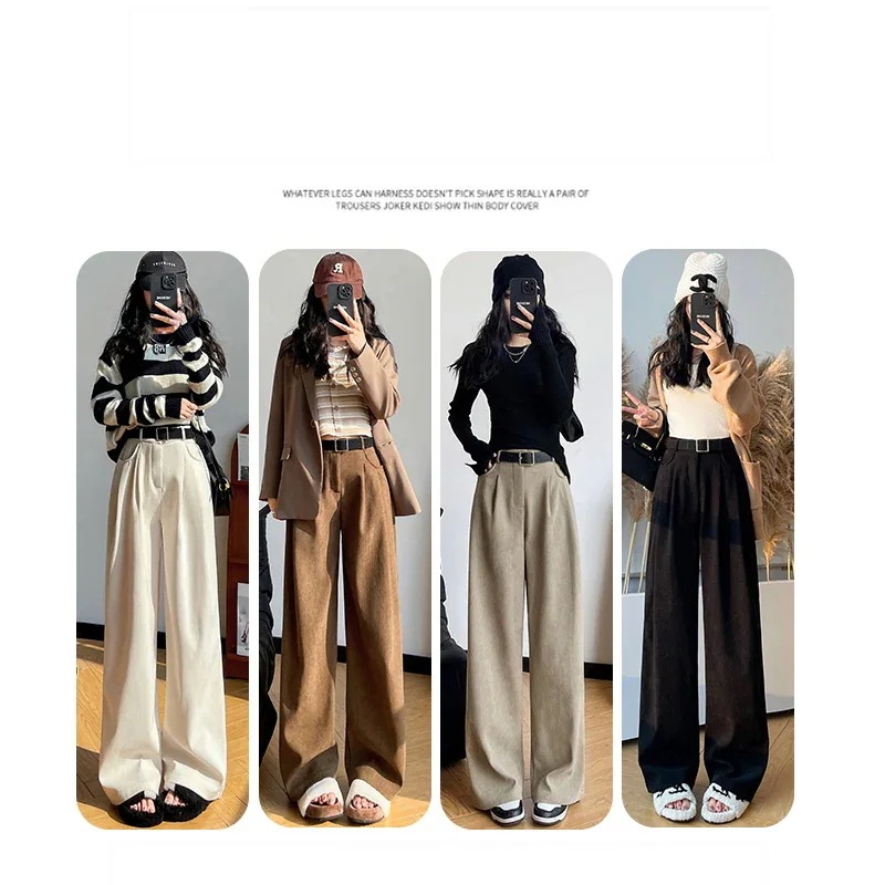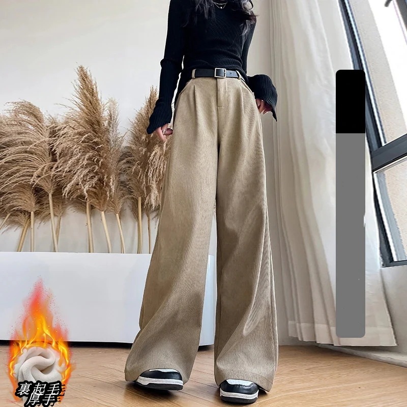 2024新作 おしゃれハイウエスト極暖 裏起毛 ワイドパンツモップパンツ ロングズボン 大きいサイズ スラックスパンツ コーデュロイパンツ 裏起毛ファッション