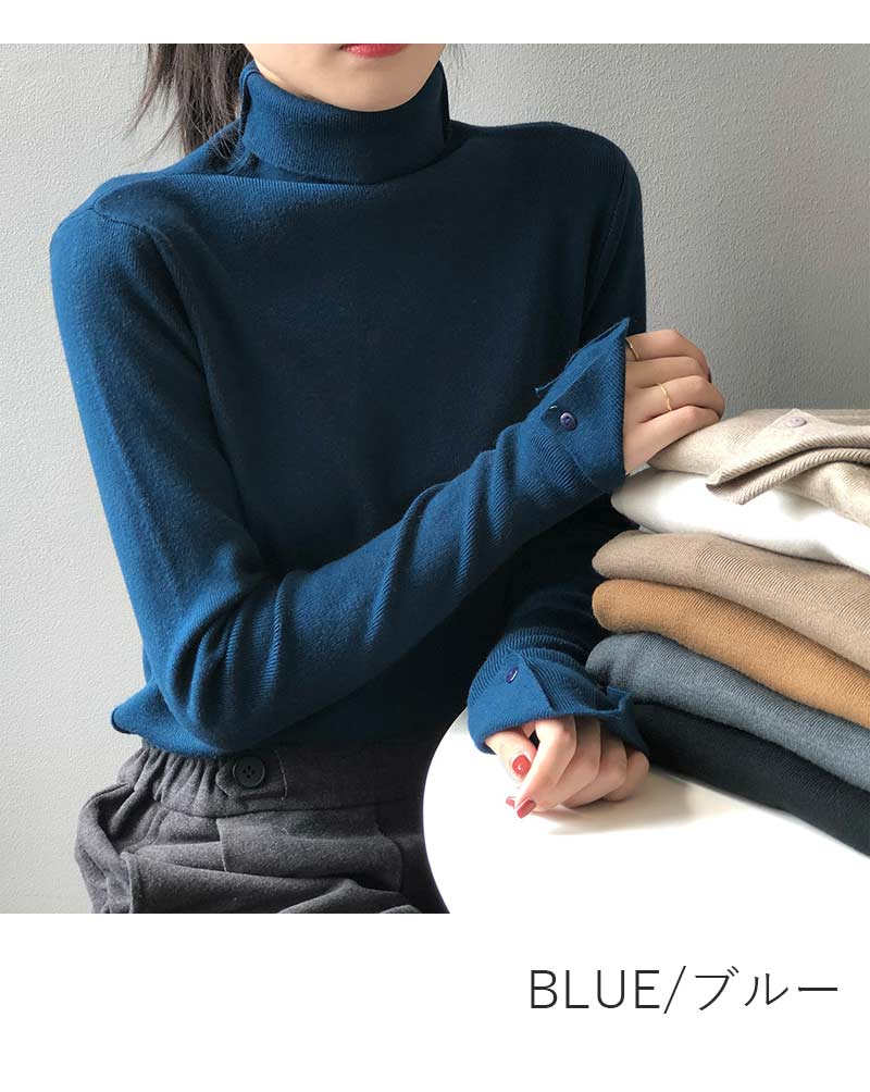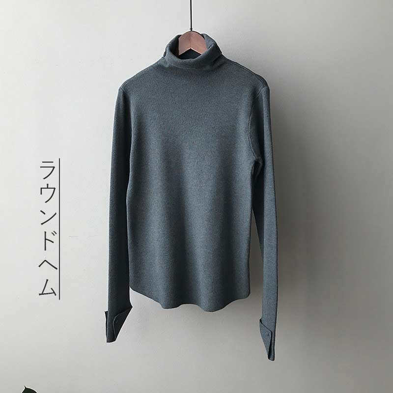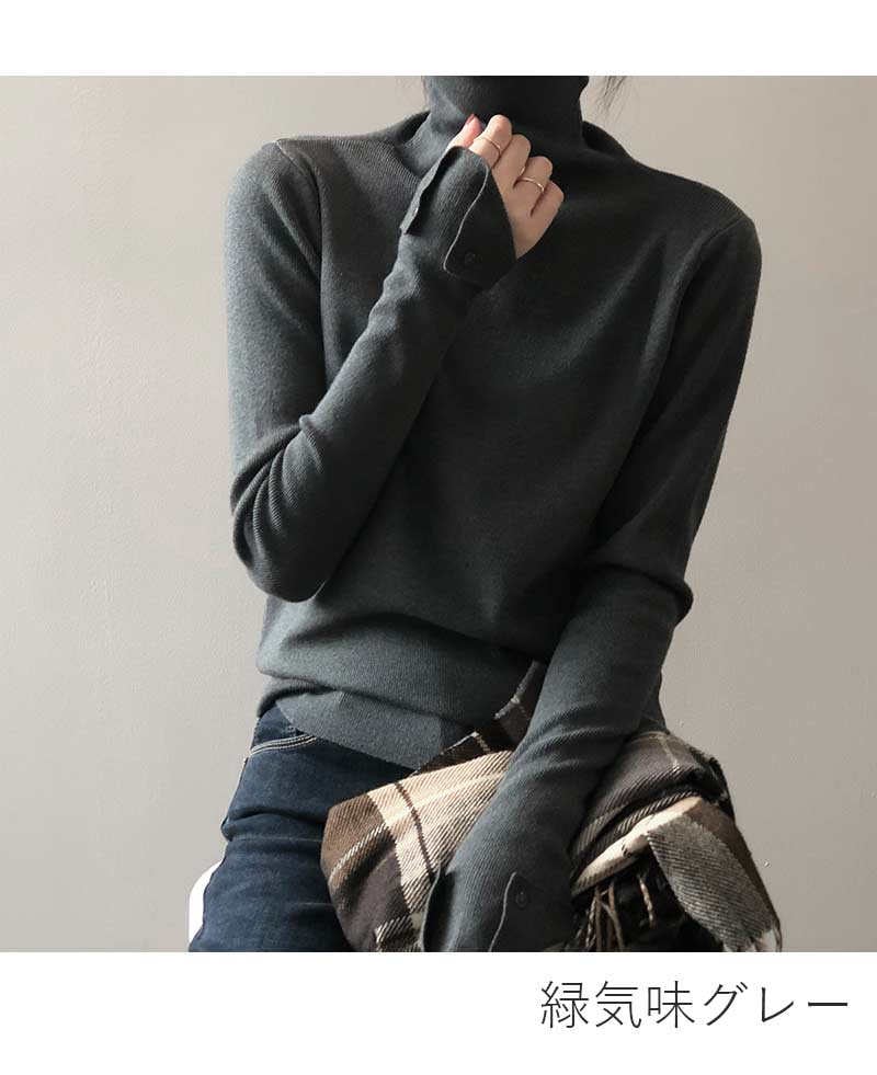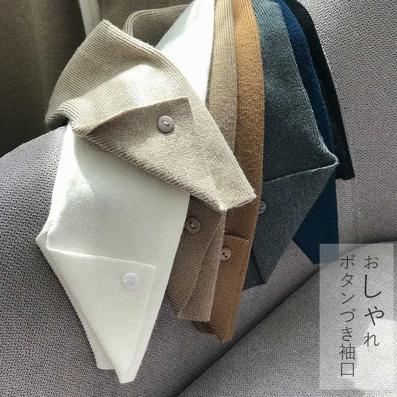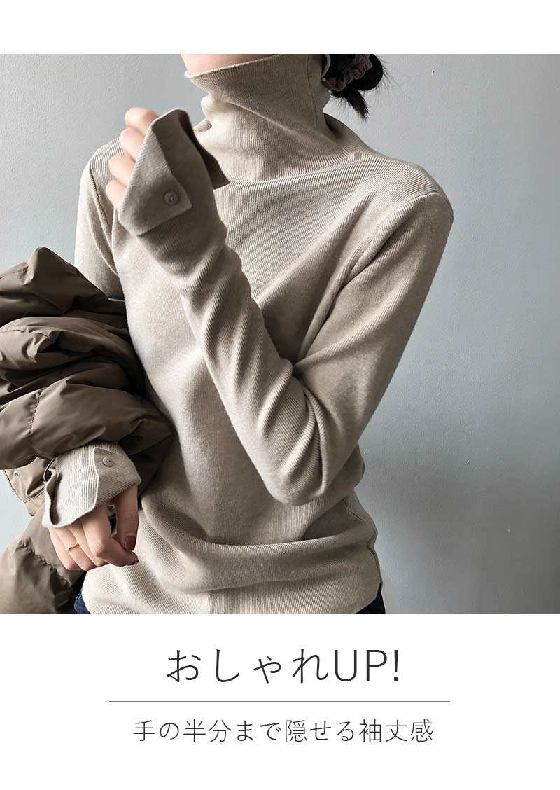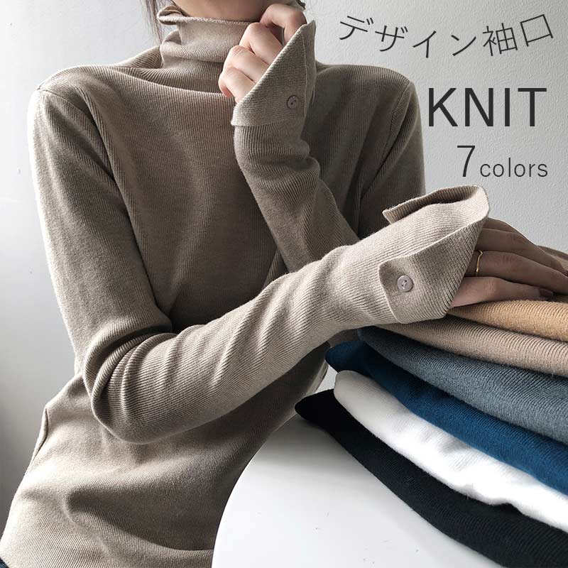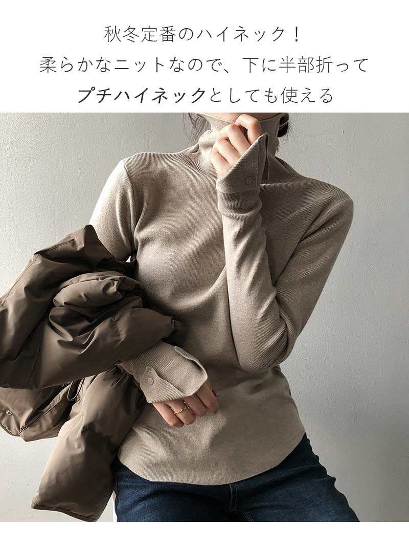 ハイネックインナー レディース ニット ハイネック セーター ニットトップス インナー リブニット ストレッチ デザイン袖口 袖長い ベーシックカラー ニットソー おしゃれ キレイめ 上品 白 黒 ブ