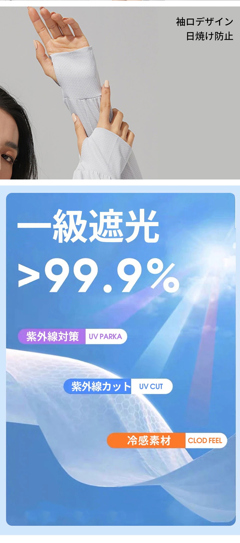 追加料金なしUV パーカー 着るだけ-7℃ 冷感 レディース 長袖 ラッシュガード UVカット アウター メッシュ 素材 通気口 指穴 つば