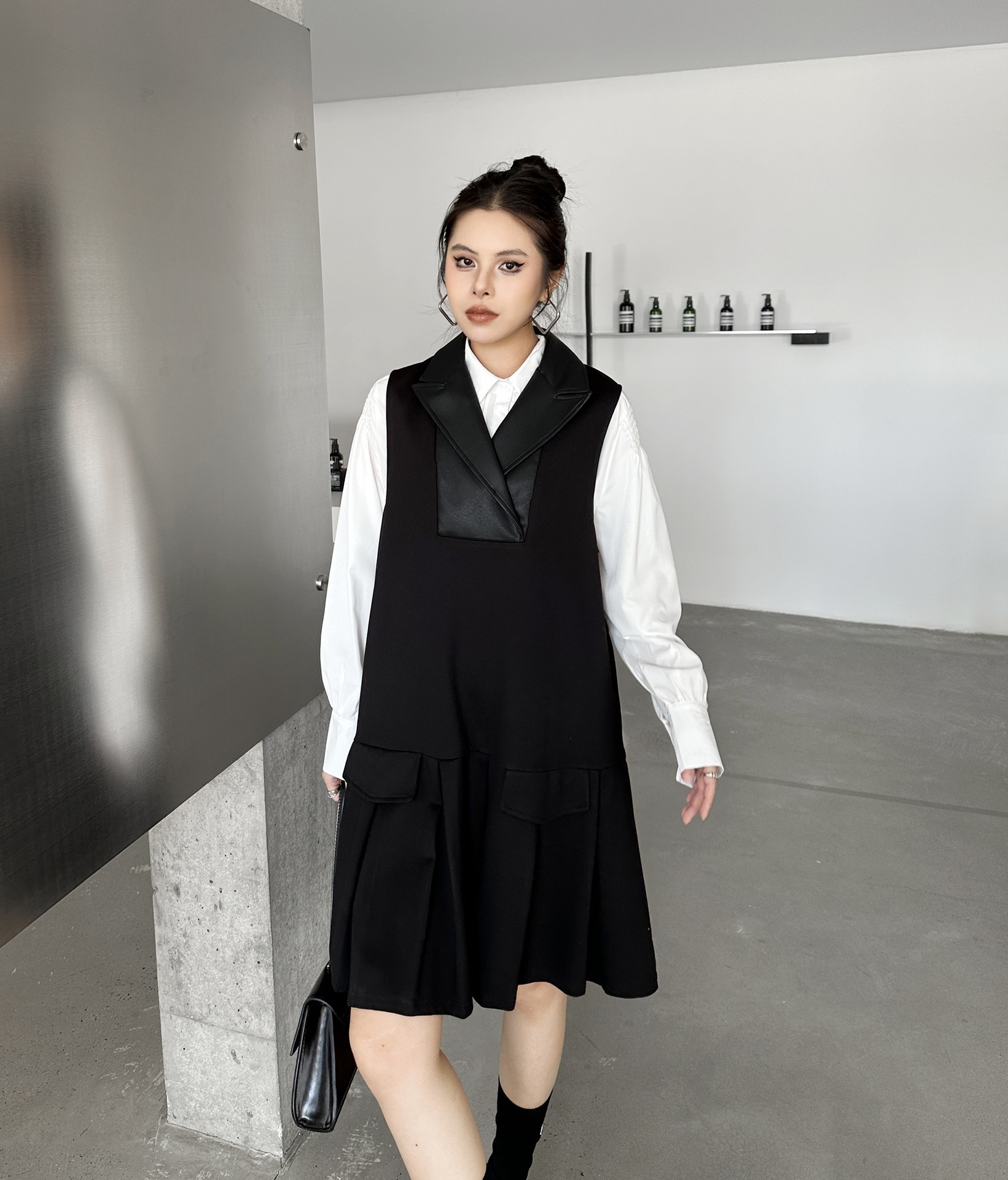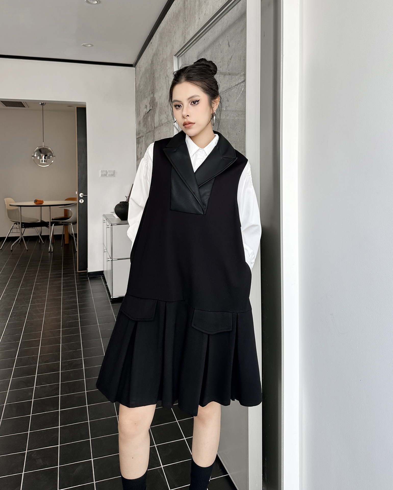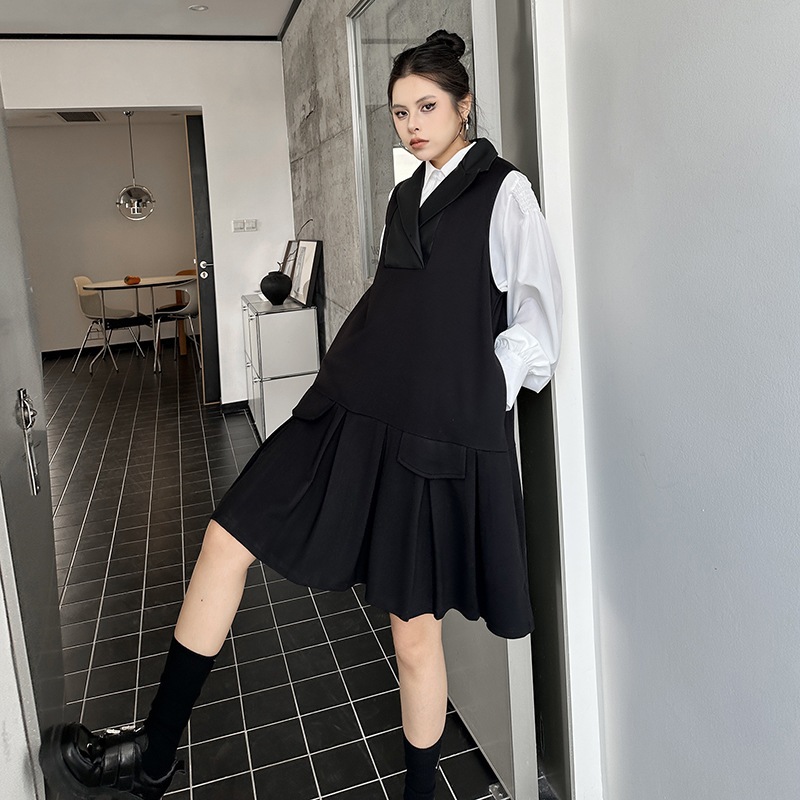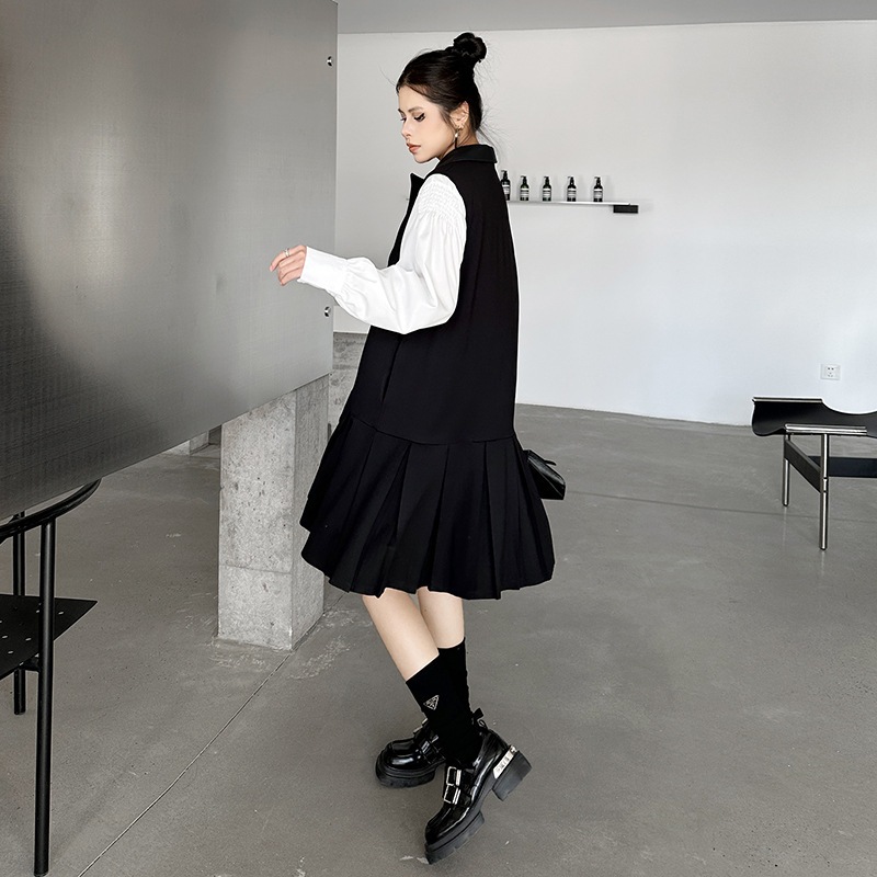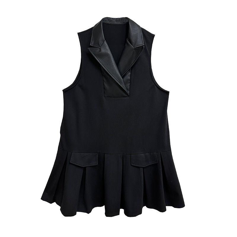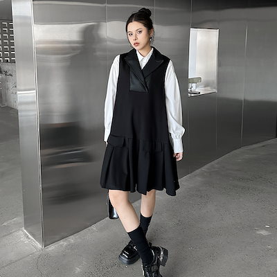 2025春 ミドル丈 ワンピース PUレザードッキング おしゃれ レディース 関連商品購入可能 メガ割 袖なしミニ 膝丈ワンピ