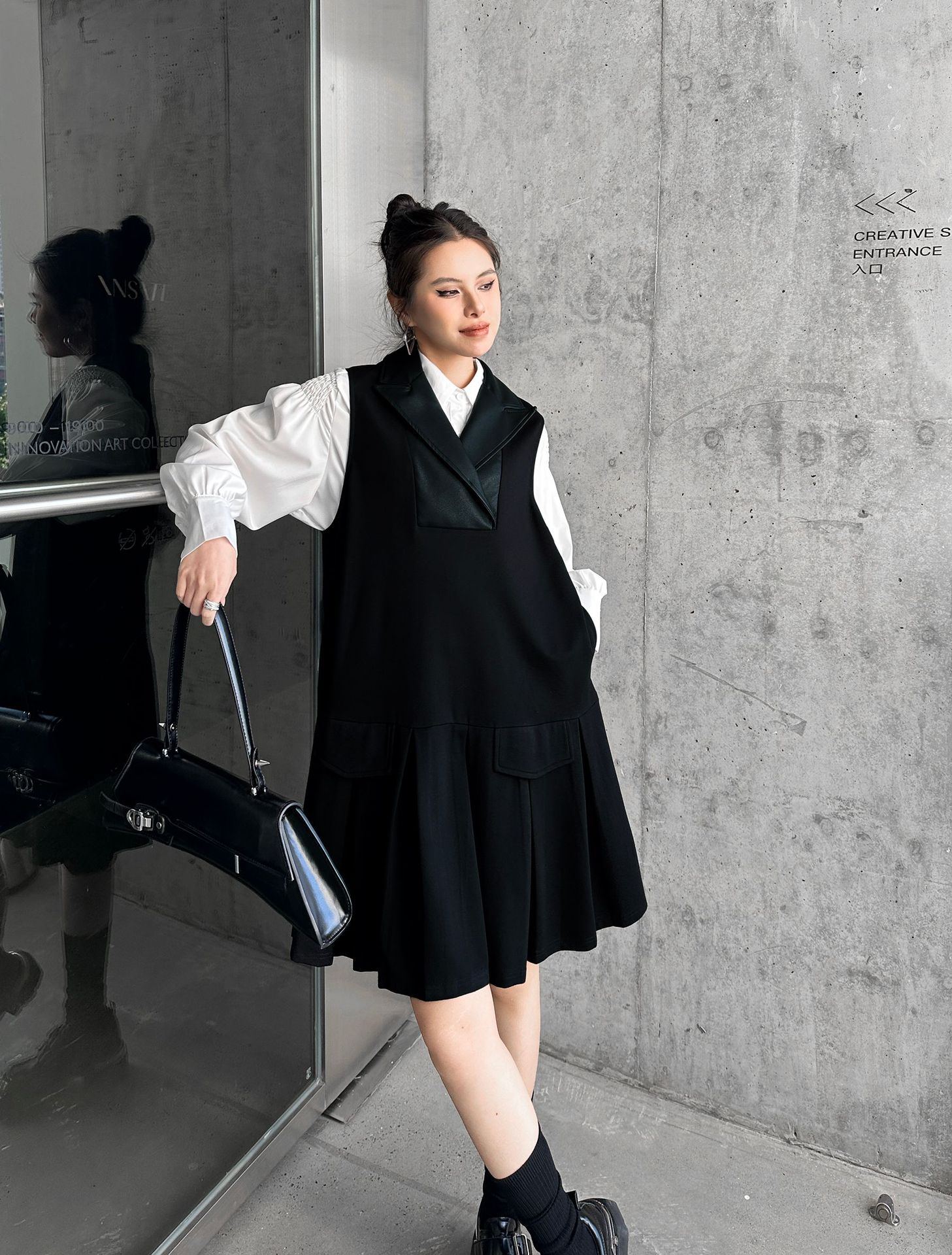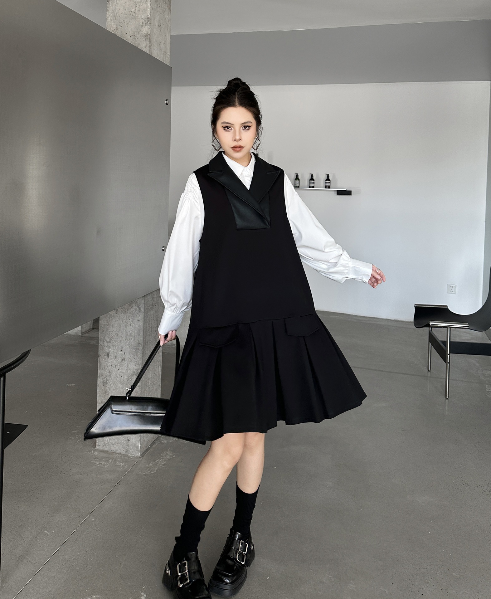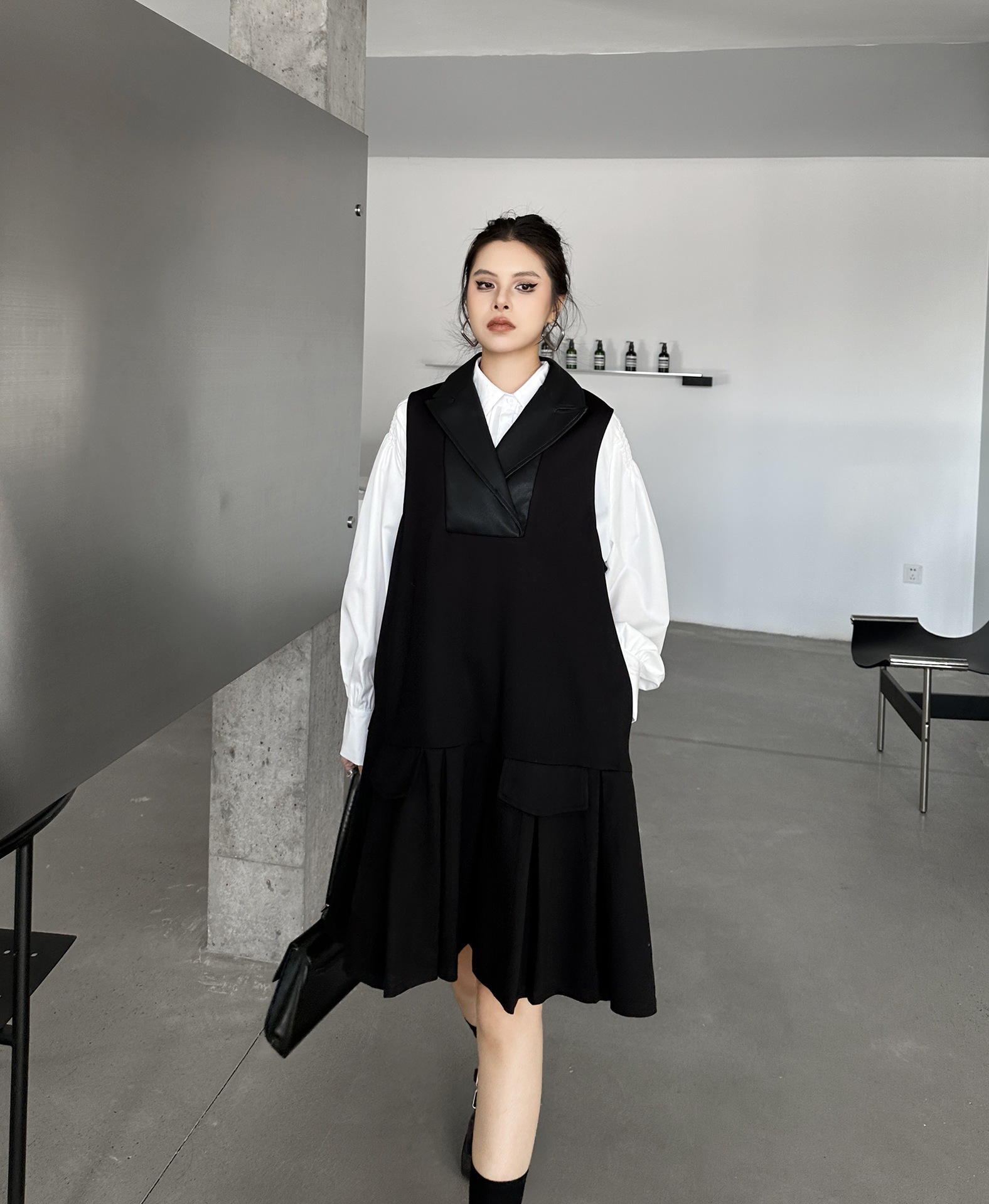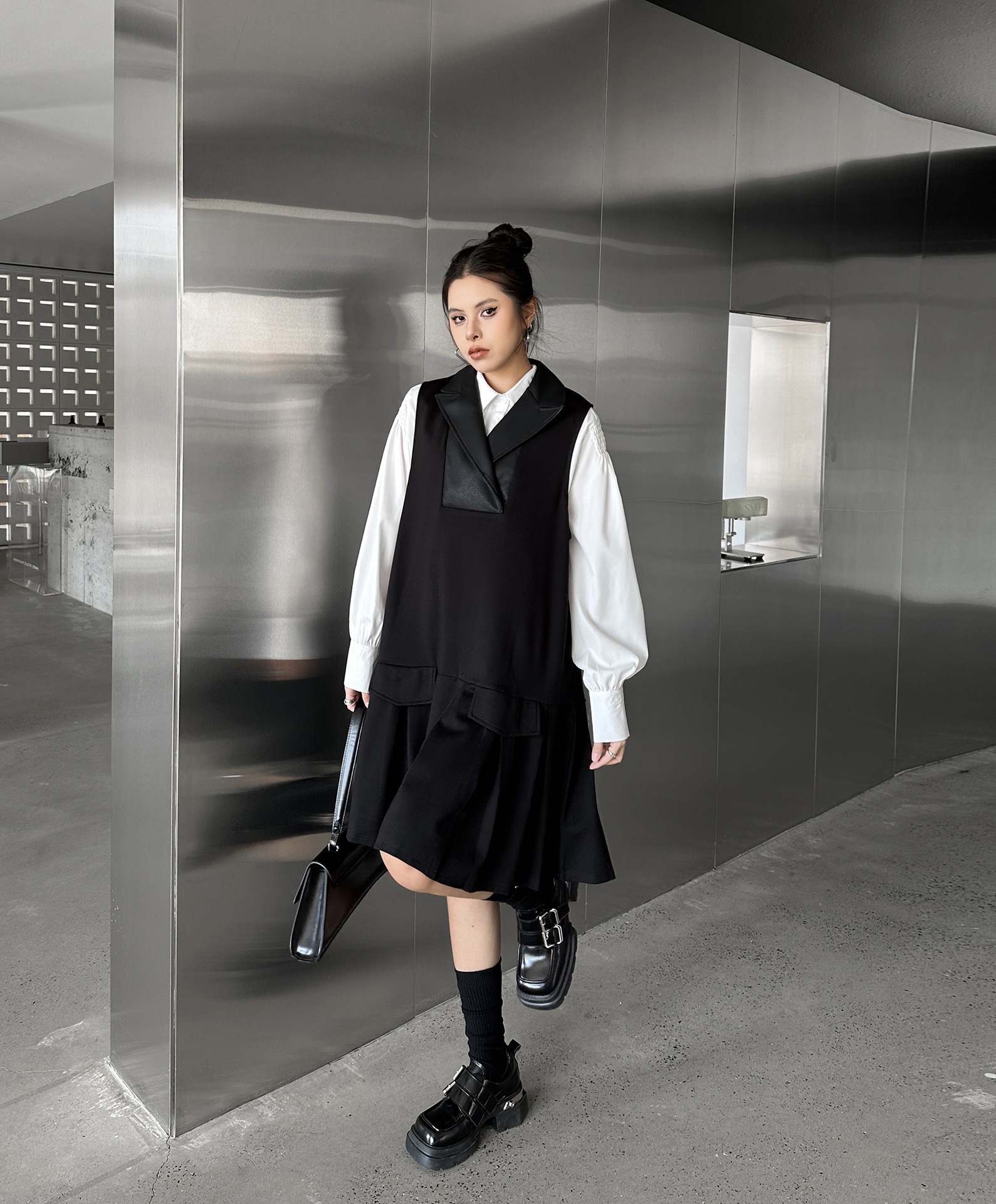 2025春 ミドル丈 ワンピース PUレザードッキング おしゃれ レディース 関連商品購入可能 メガ割 袖なしミニ 膝丈ワンピ