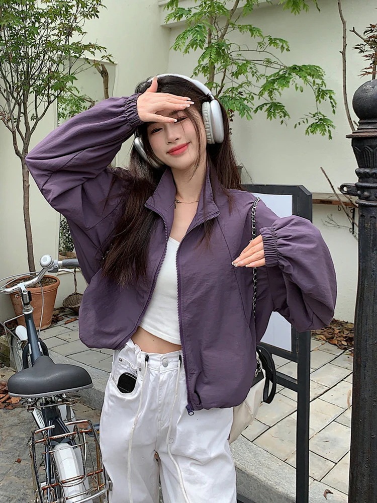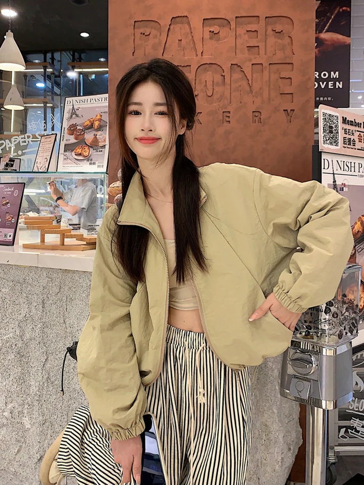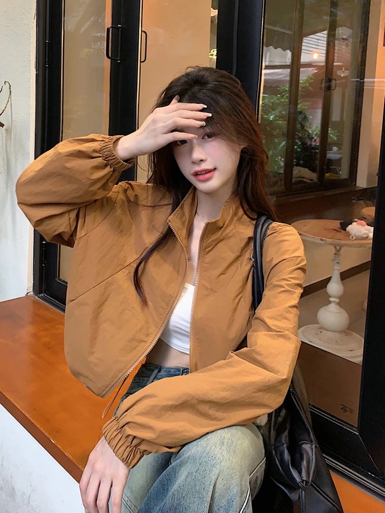 2024春夏 ショート かわいい フル ブルゾン トップス アウター ショート スタンドショート お出かけハイストリートアウター長袖セクシートップスカジュアルファッションお出かけ 秋トラック