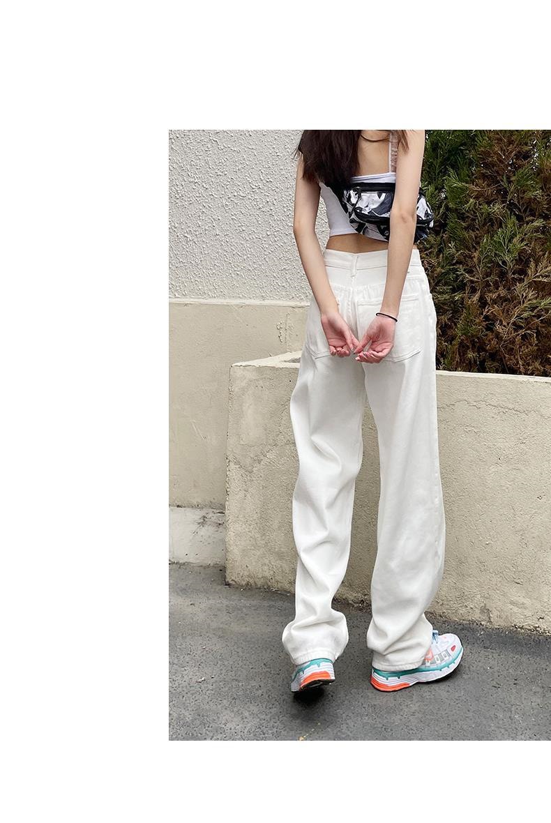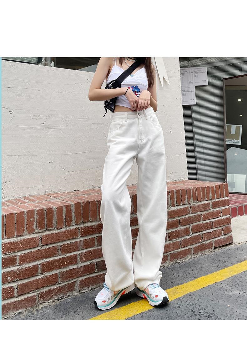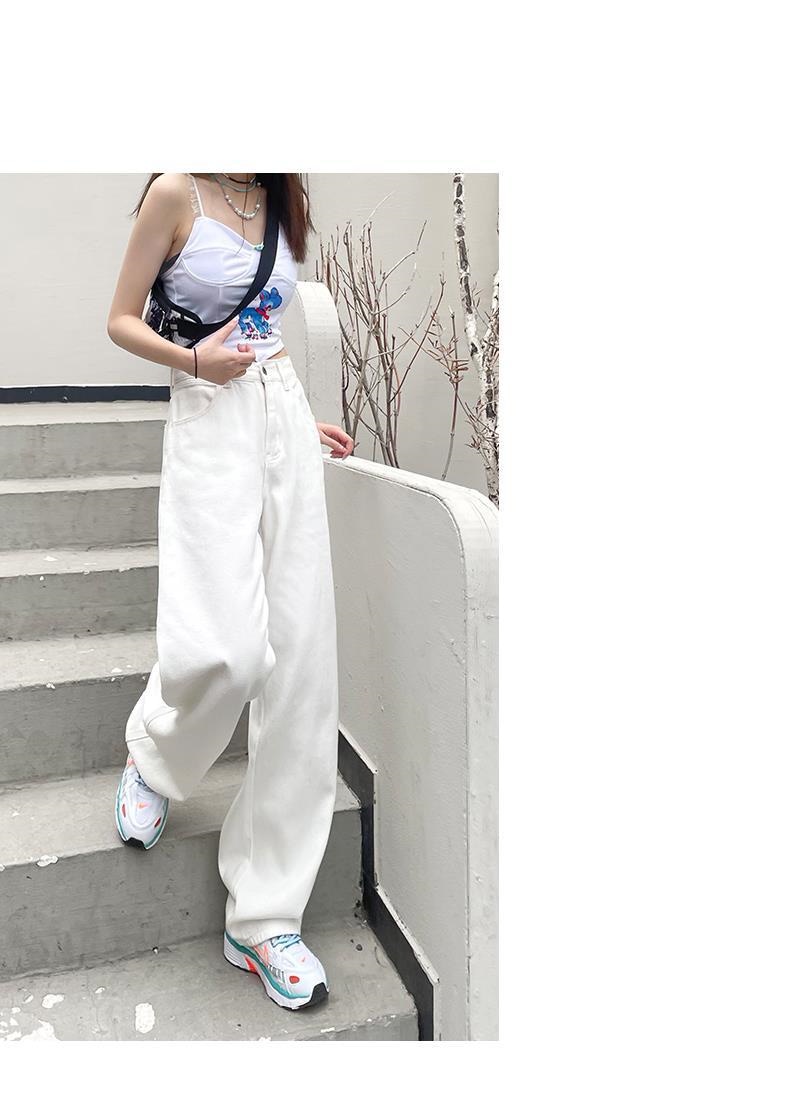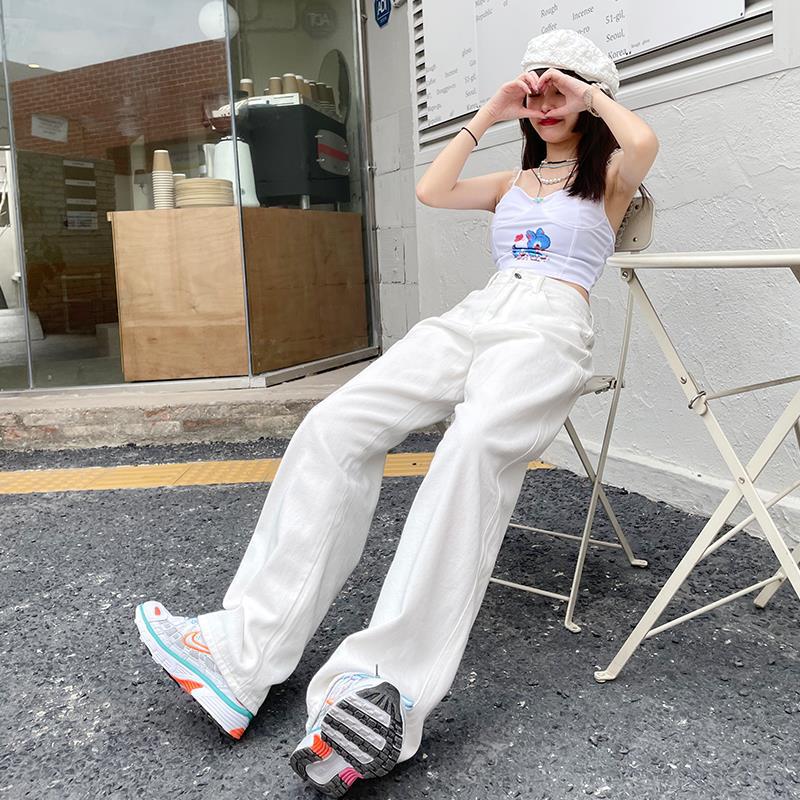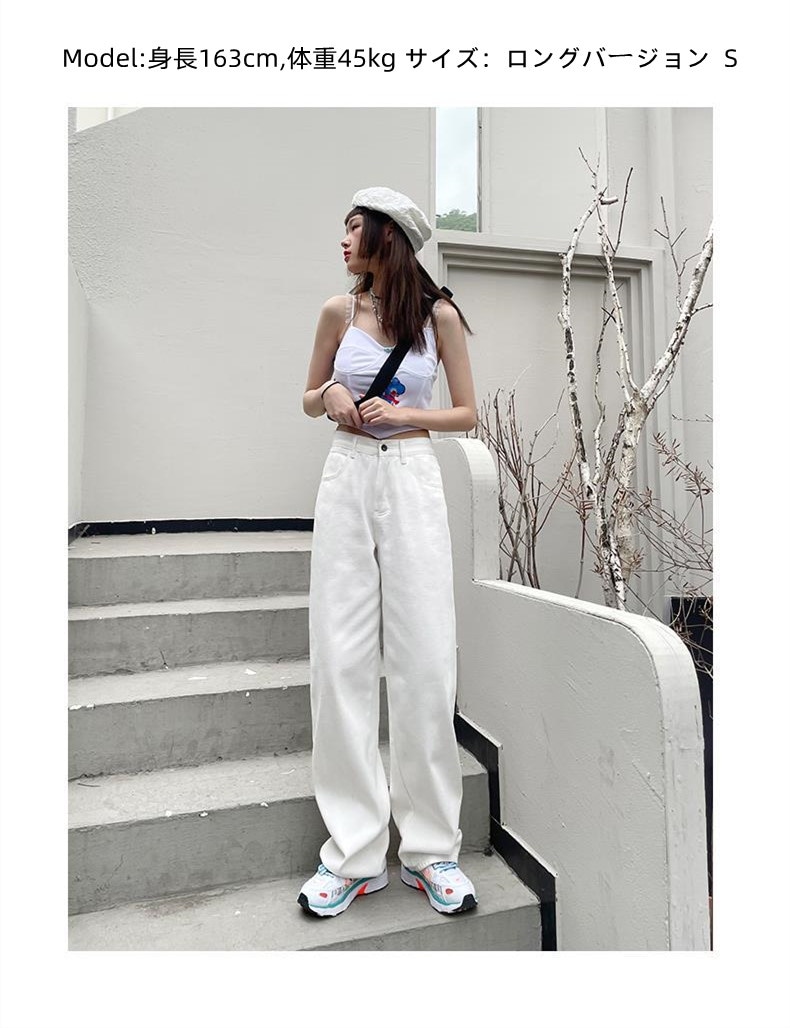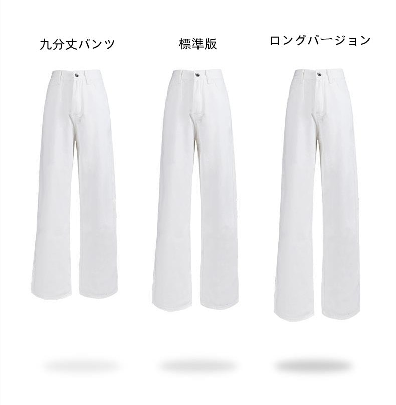 ホワイト ワイドパンツ デニムパンツ レディース 春 新商品 ハイウェスト 着 痩せ ゆったり エクストラログ丈 ストレートパンツ モップパンツ
