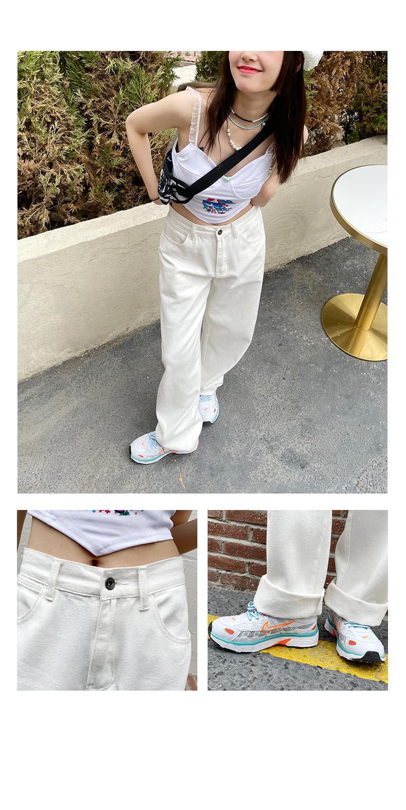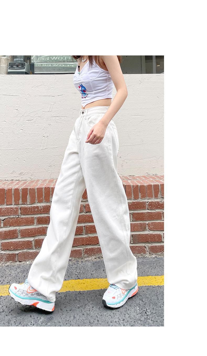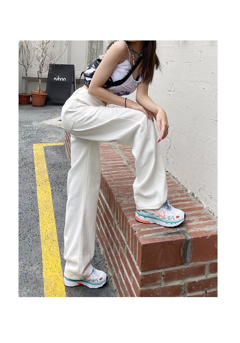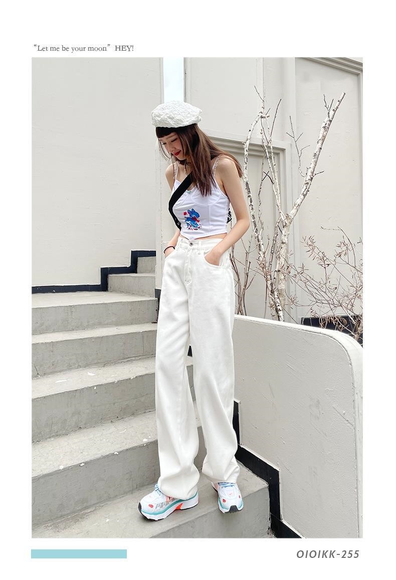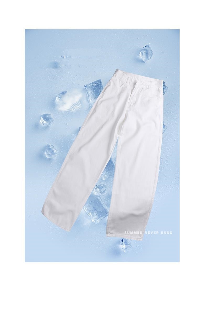 ホワイト ワイドパンツ デニムパンツ レディース 春 新商品 ハイウェスト 着 痩せ ゆったり エクストラログ丈 ストレートパンツ モップパンツ