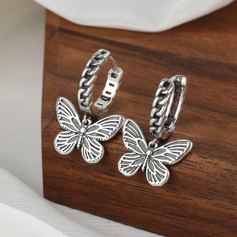 s 925純銀レトロ蝶のイヤリング女パンク冷淡風ダーク蝶のイヤリングピアスイヤリング夏のピアス冬のピアスピアス春の耳元をおしゃれに イヤリング