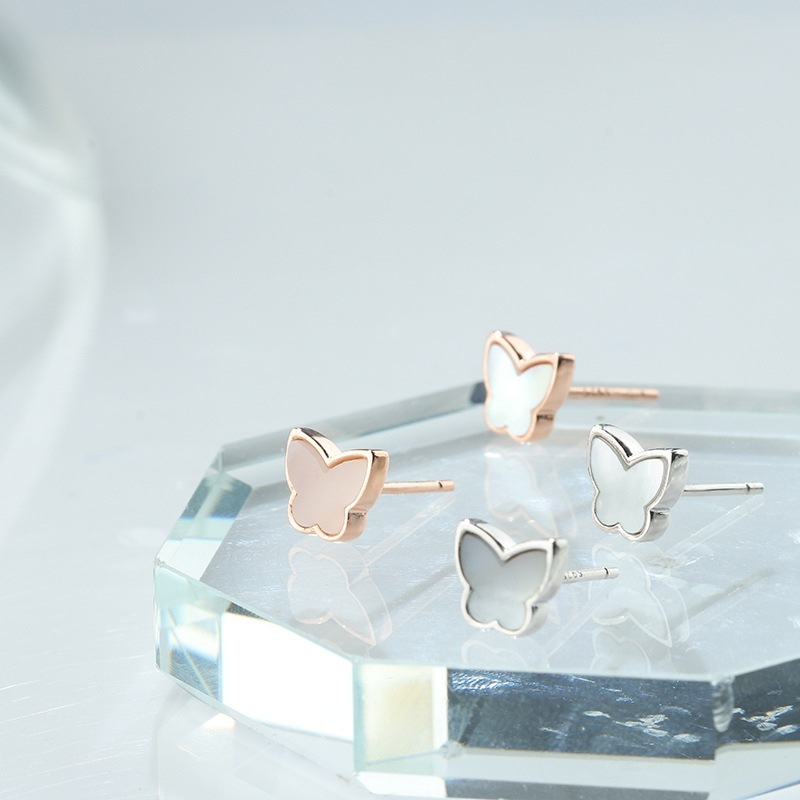 s 925純銀小蝶ピアス女子小柄学生小清新仙女イヤリング白貝耳飾り森系百合夏のピアス冬のピアスイヤリングピアスイヤーカフ春の耳元をおしゃれに