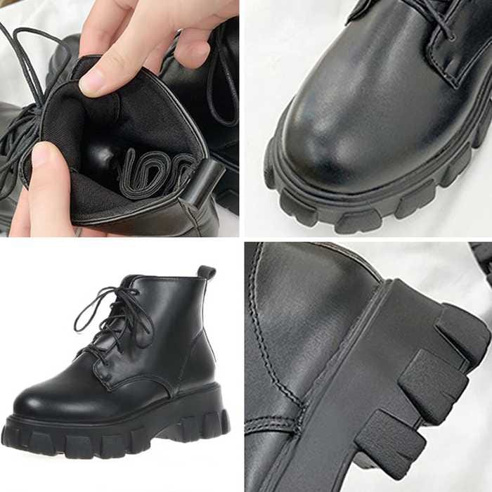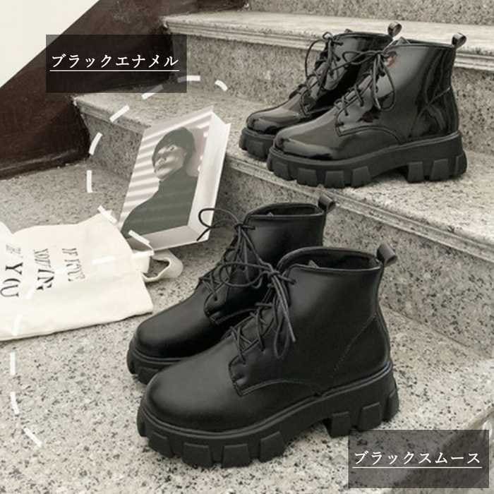 ショートブーツ レディース厚底ブーツ韓国ショートブーツ 黒 おしゃれ シューズ 美脚編み上げブーツ靴 ワーク エンジニアブーツ