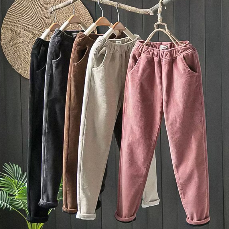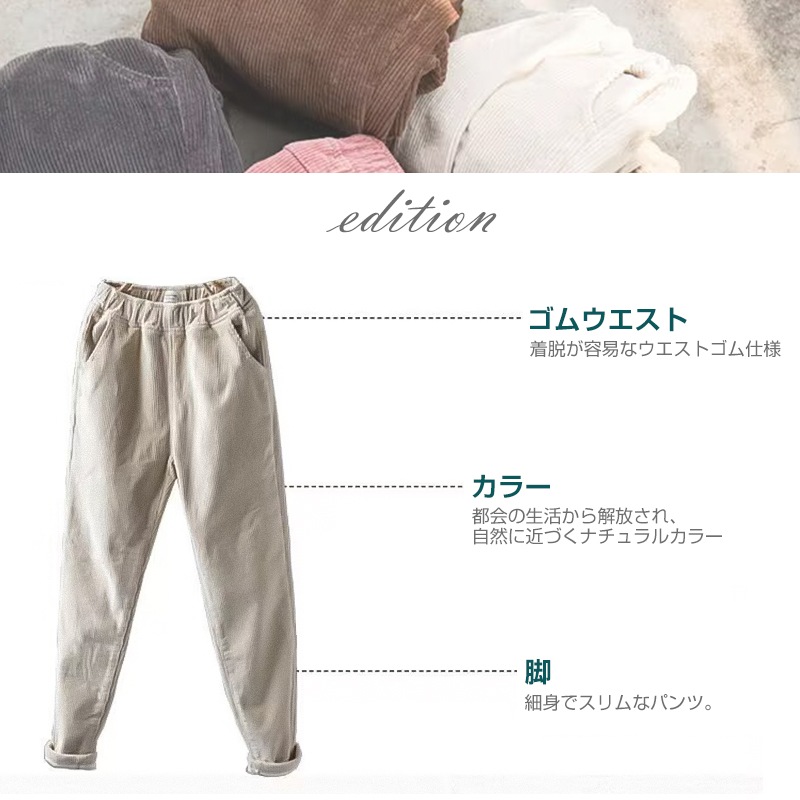 コーデュロイパンツ 裏起毛 レディース サルエルパンツ 太め ゆったり 秋 冬 防寒パンツ 極暖パンツ 厚手 コーデュロイ ズボン バルーンパンツ ゴムウエスト カジュアル 無地 大きいサイズ あたっ