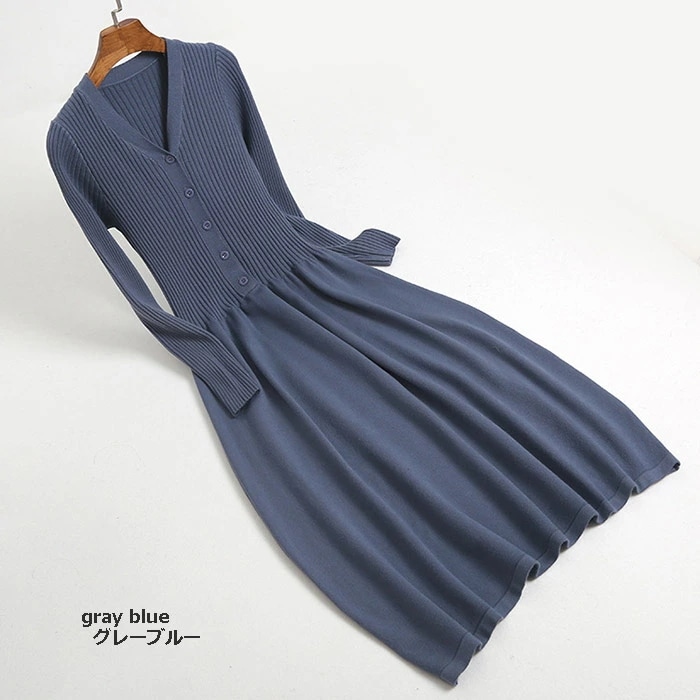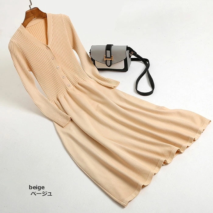 ニットワンピース 秋冬 大人 長袖 きれいめ ロング ニット ワンピース フレア タイトワンピース ニットロングワンピース Vネック 大人 おしゃれ 春 キャメル オフホワイト ブラ