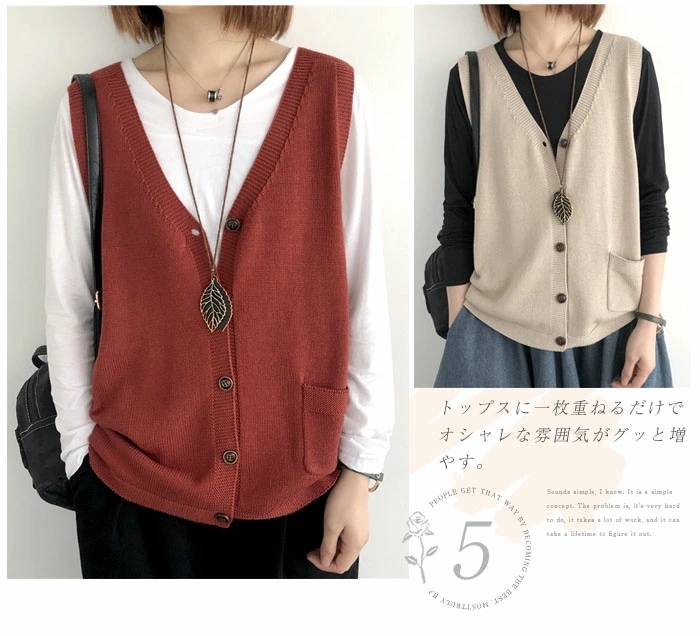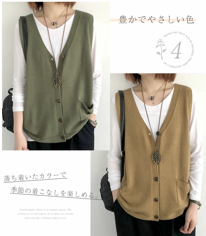 ニットベスト レディース Vネック ベスト 春 秋 前開き ベスト トップス カーディンガン ニット ノースリーブ セーター 普段着 レイヤード 重ね着 ゆったり 大きいサイズ 体型カバー カジュア