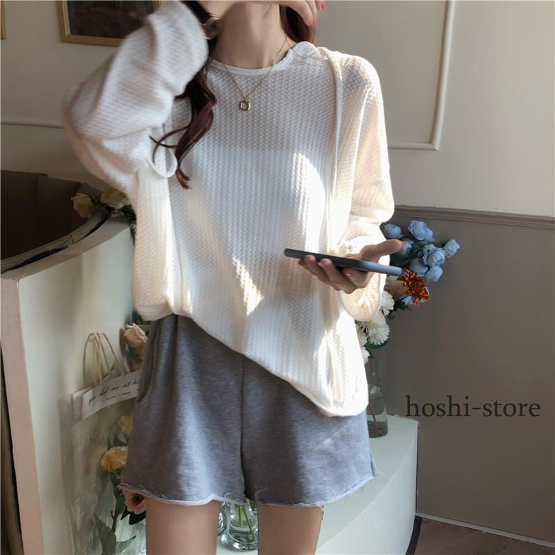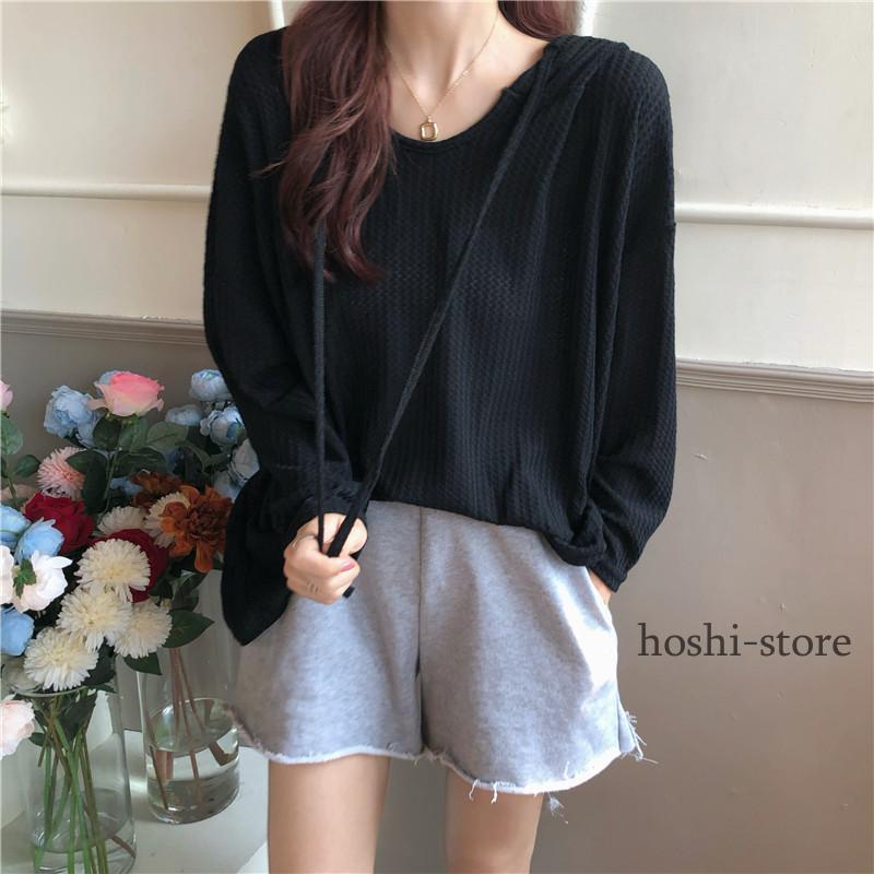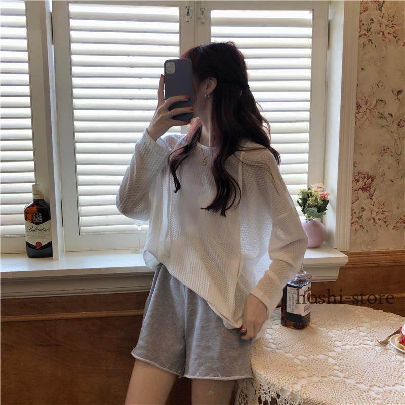 Tシャツ レディース 長袖 パーカー シースルー シアートップス プルオーバー 夏 春 秋 薄手 透け感 レイヤード ブラウス フード付き カジュアル ゆったり