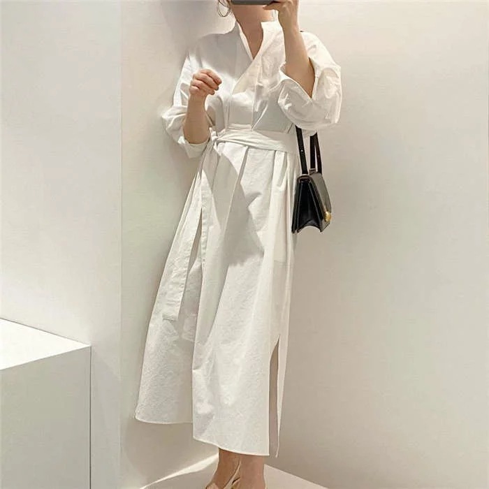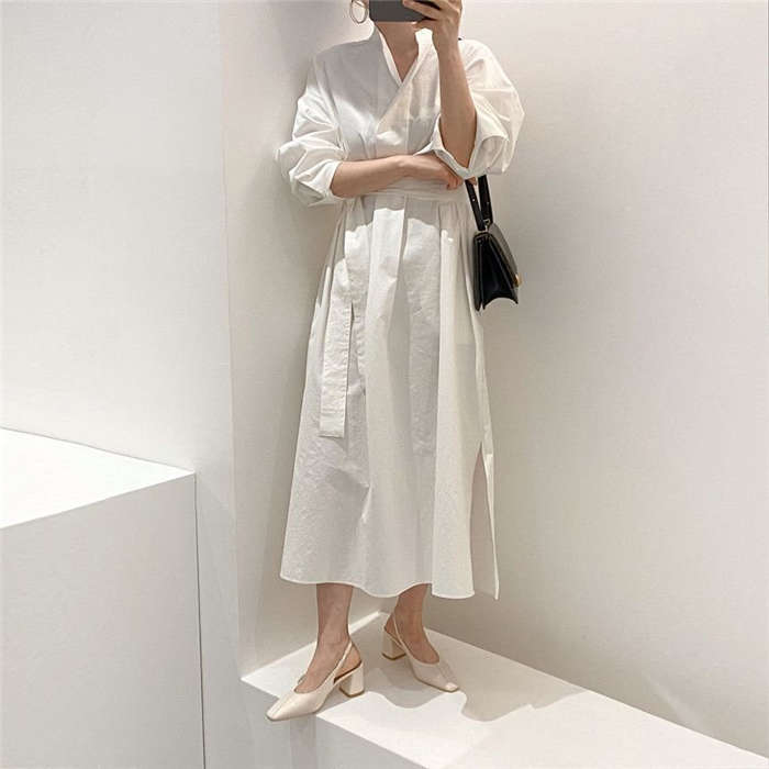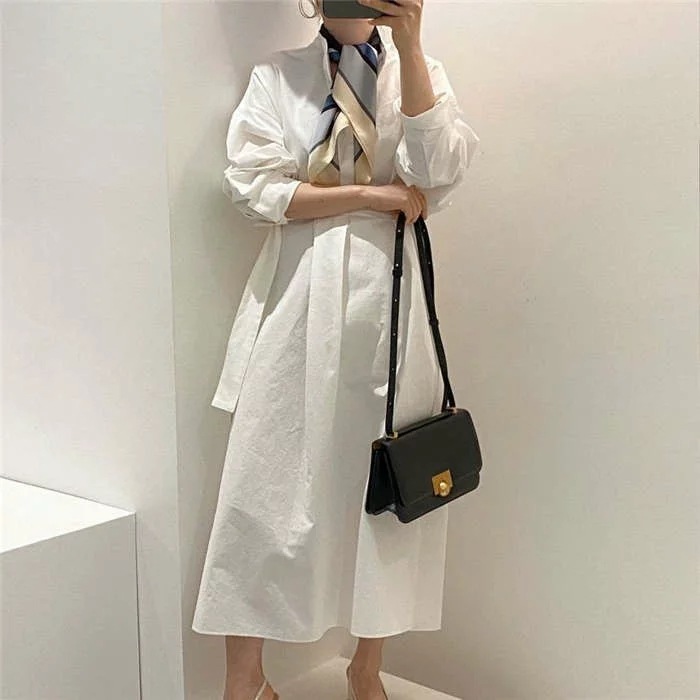 シャツワンピースニットベストレディース40春秋長袖ロング丈ニットベストセットアップ2点セットオシャレワンピース2点セットロングワンピースロングジレ着痩せ上品カジュアル着痩せ上品通勤カジュアル白黒ホワイ