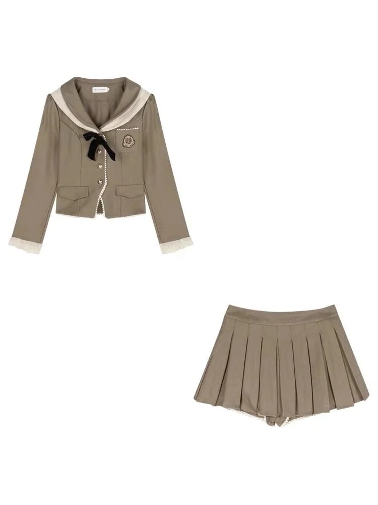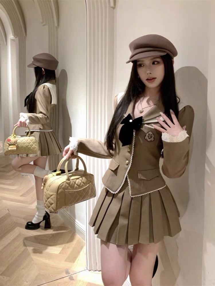 セットアップ 韓国ファッション 涼しく楽ちんセット2024 新作 学院風スーツリボンスカート雰囲気ブレザー春秋プリーツスカート2枚セット 制服 ファッションアップ レディース