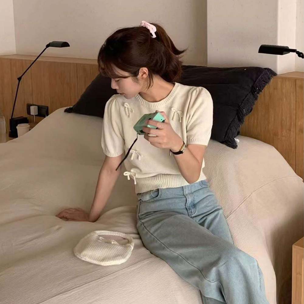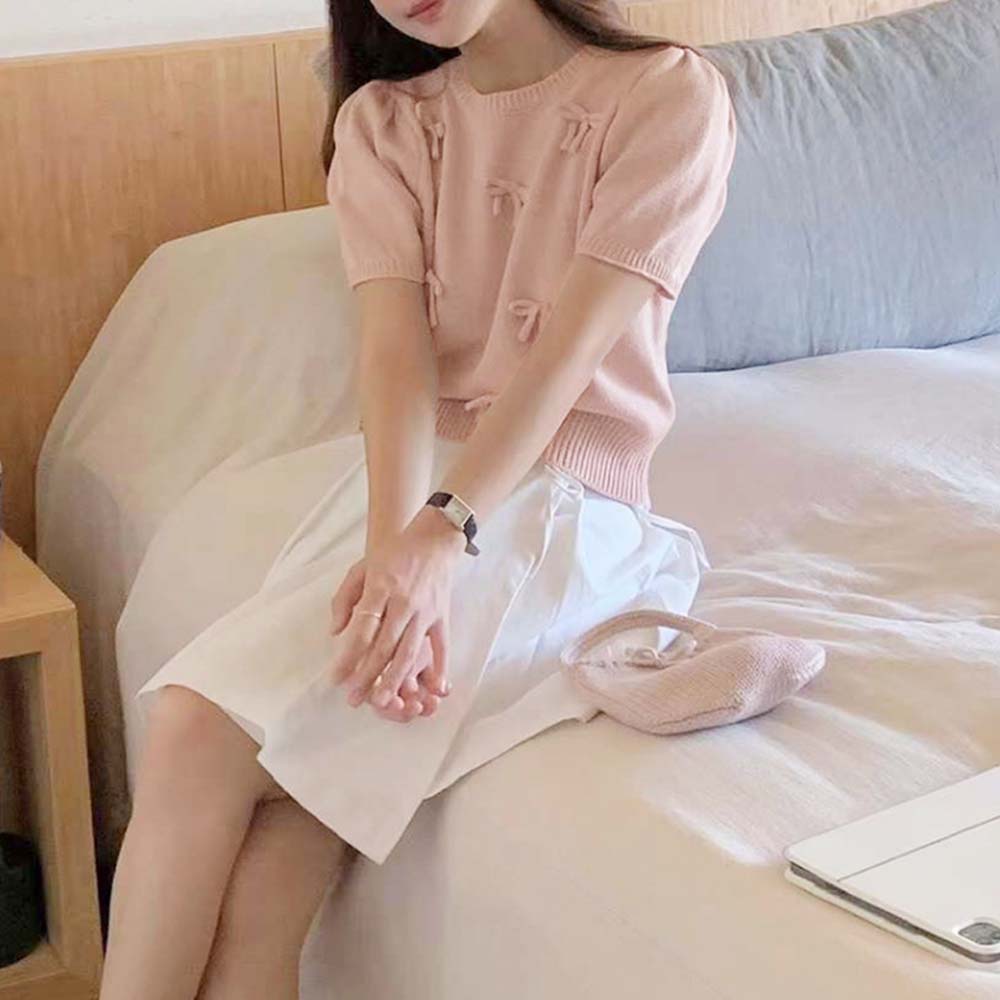 シアースリーブ ドッキングシャツ ボウタイシャツブラウス