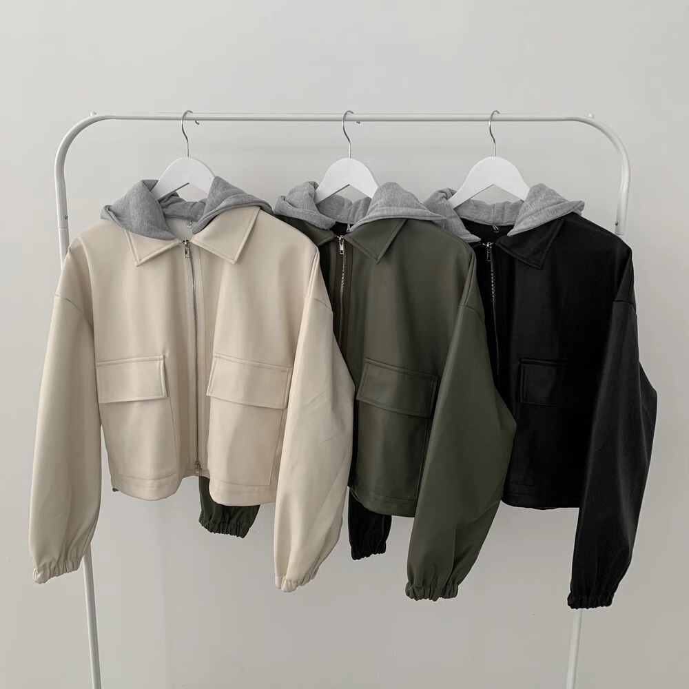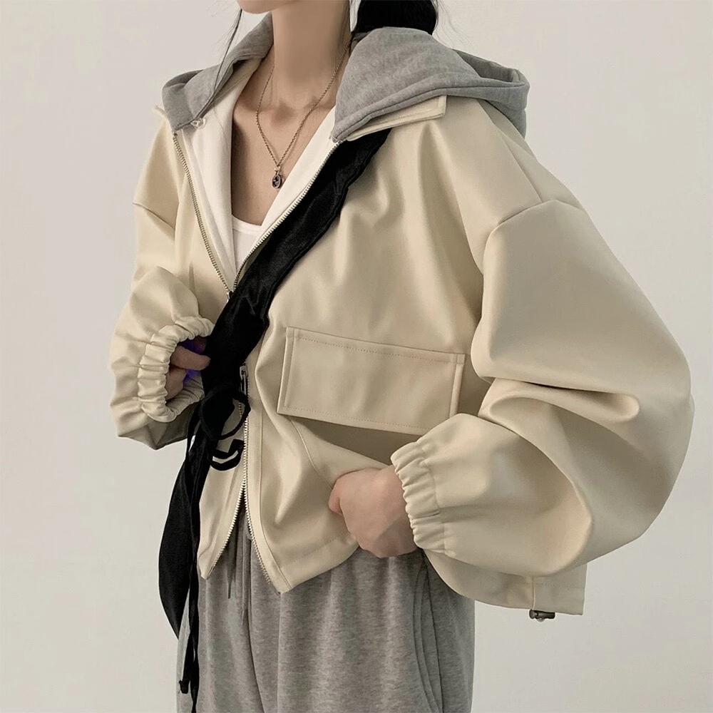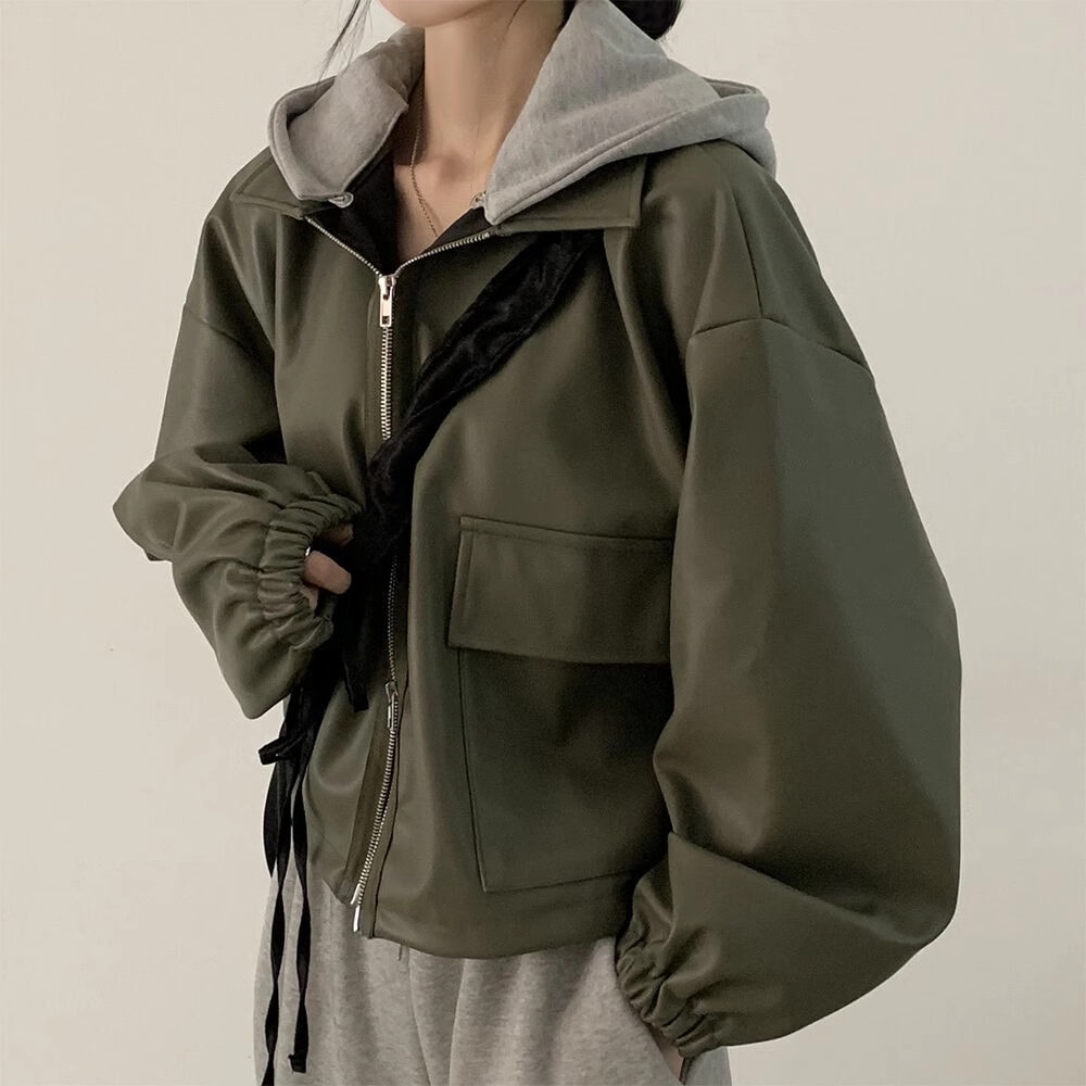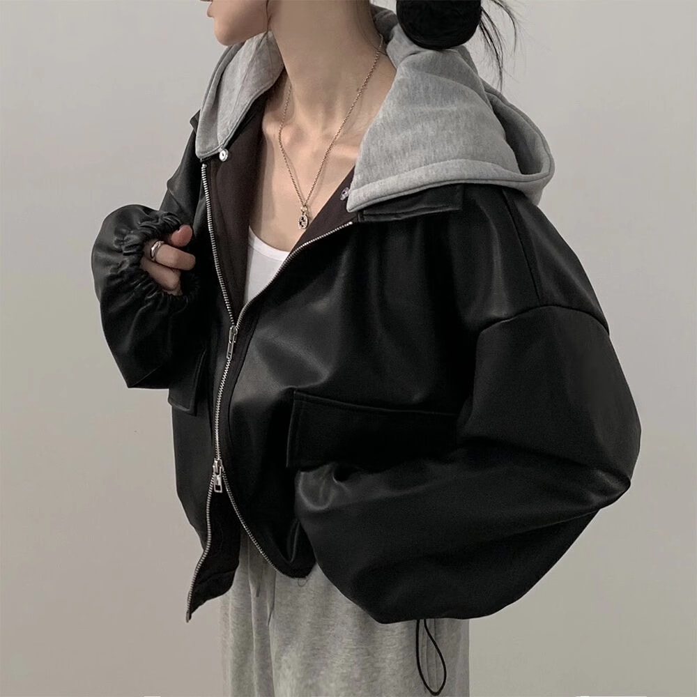 ライダースジャケット秋アウターフード付きショートpu レザージャケット 韓国ファッション 流行りトップス 革ジャンレディース クライダースジャケットコート 秋ジャケット