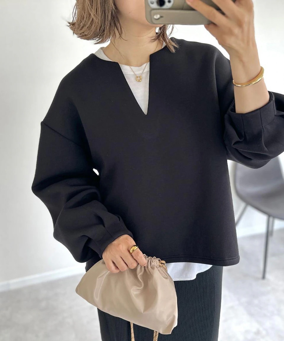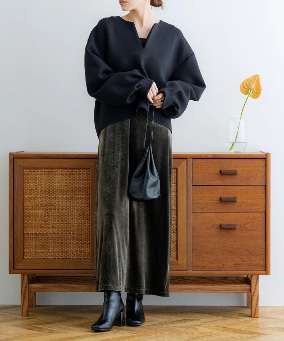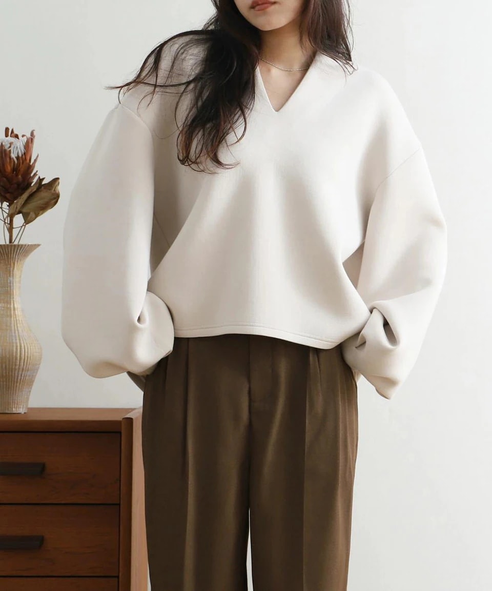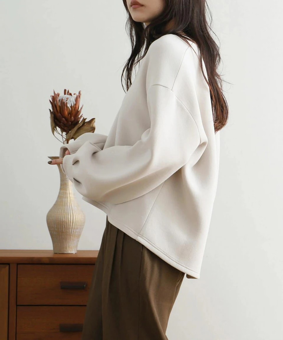 スウェット パーカー アウター レディース トップスコート Vネック 長袖 秋 冬 体型カバー ビッグシルエットシンプル ルーズシルエット ベーシック 防寒 保温 暖かい ゆったり ぽわん袖