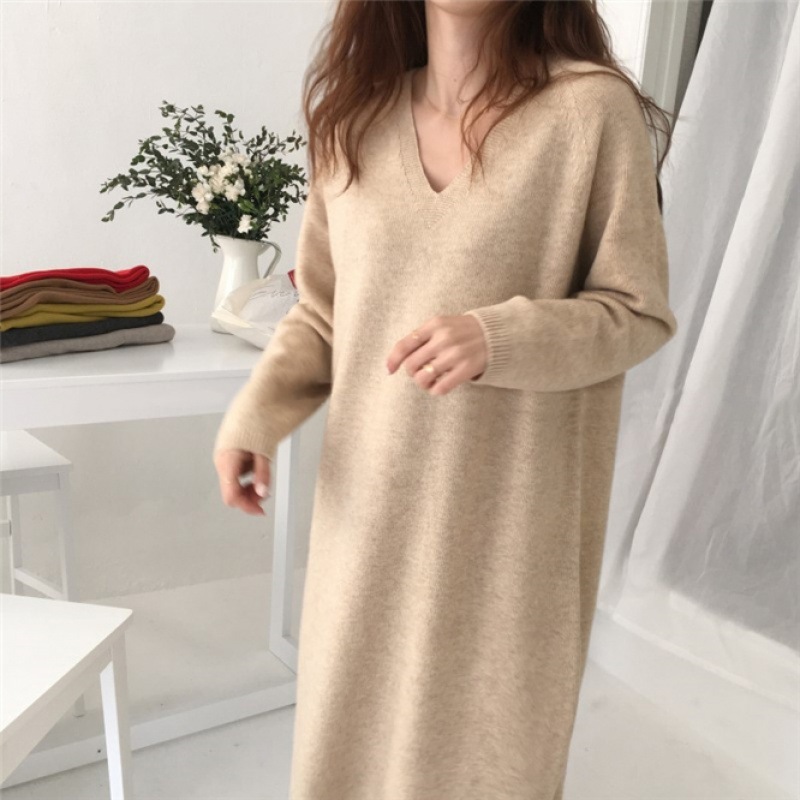 人気ニットロング丈秋冬 選べる2TYPE 日韓新作ゆったり 純色ニットワンピースロングワンピース ニットワンピ