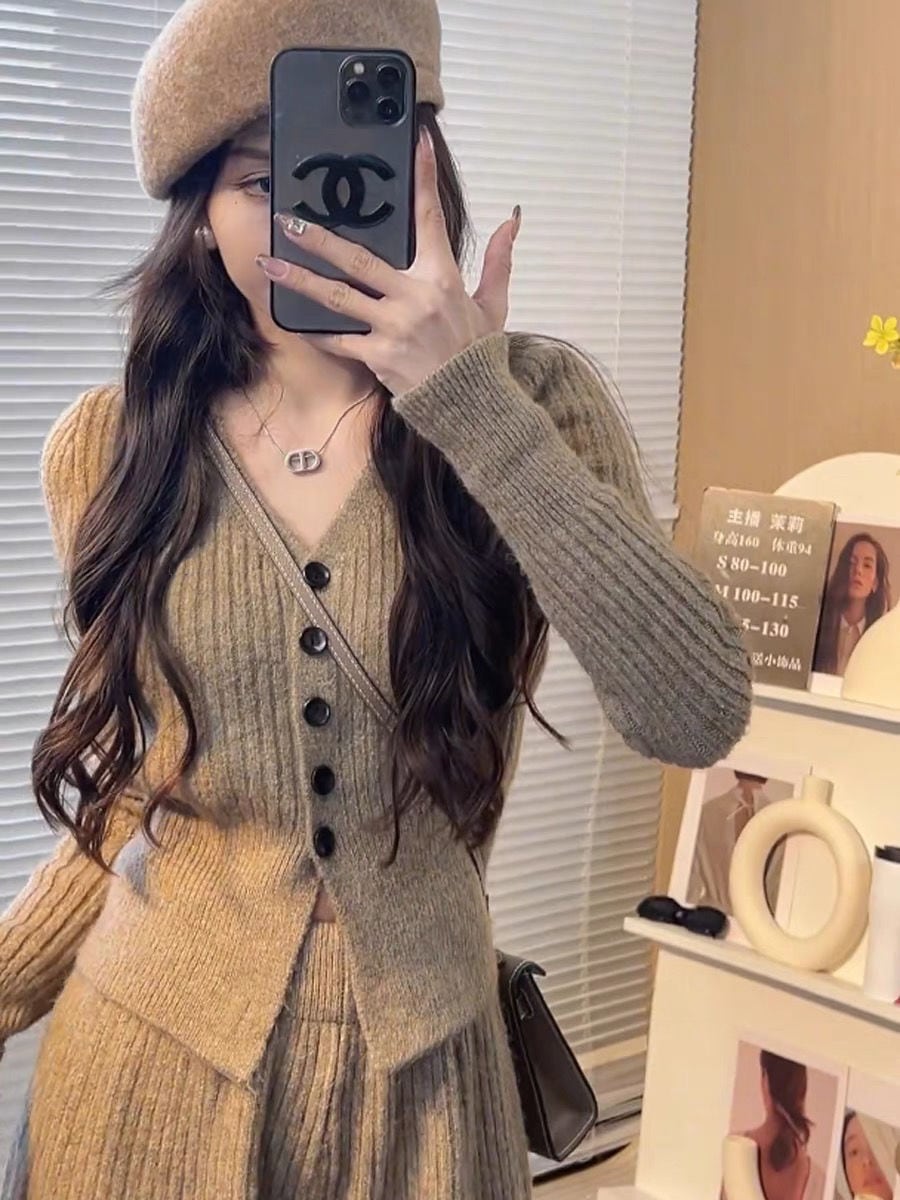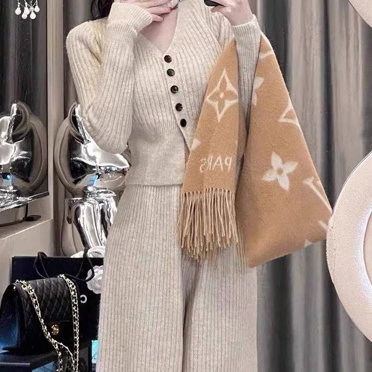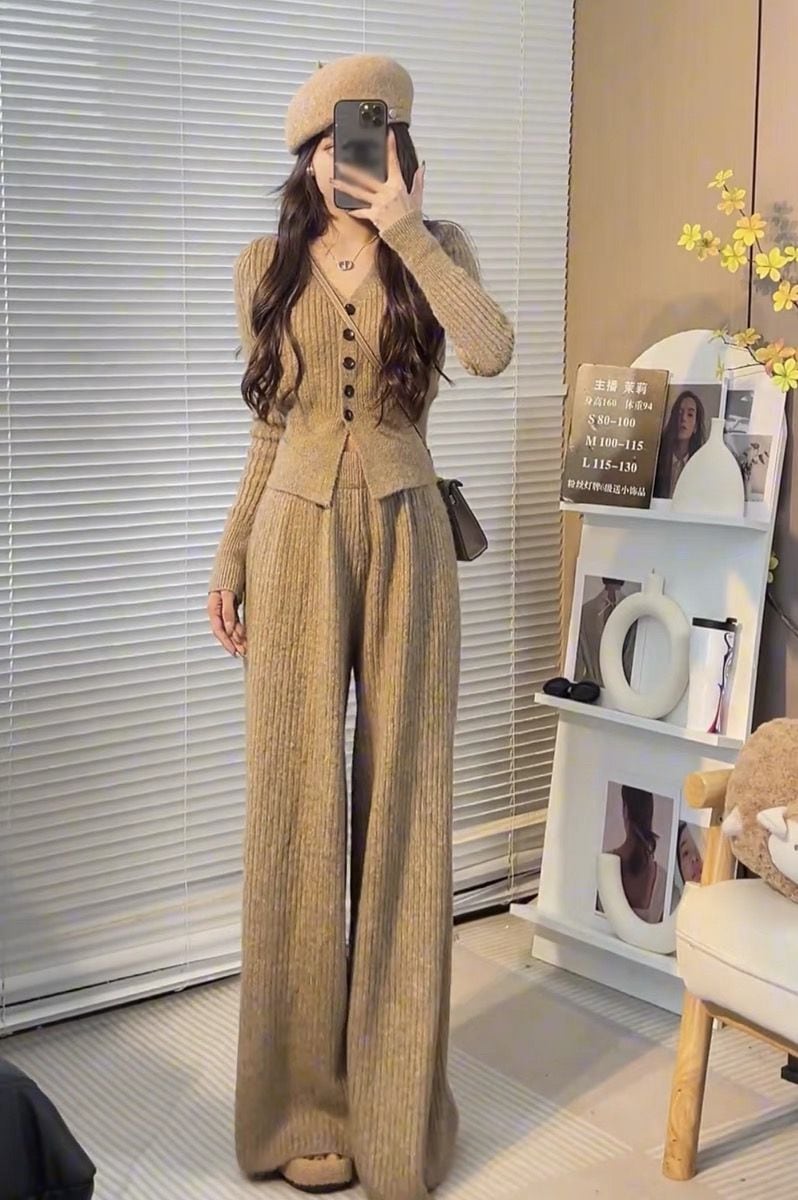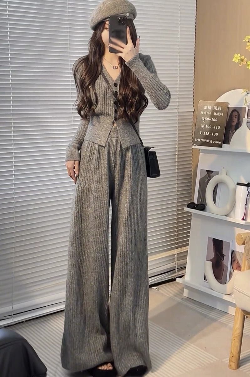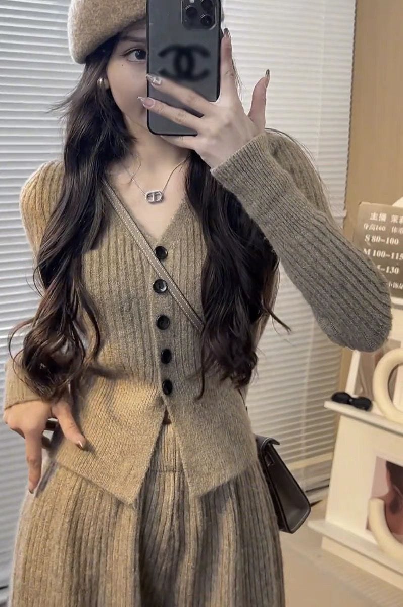 ニットセット vネック 上下セット トップス+パンツ カジュアル 3色 レディース セットアップ セットアップ