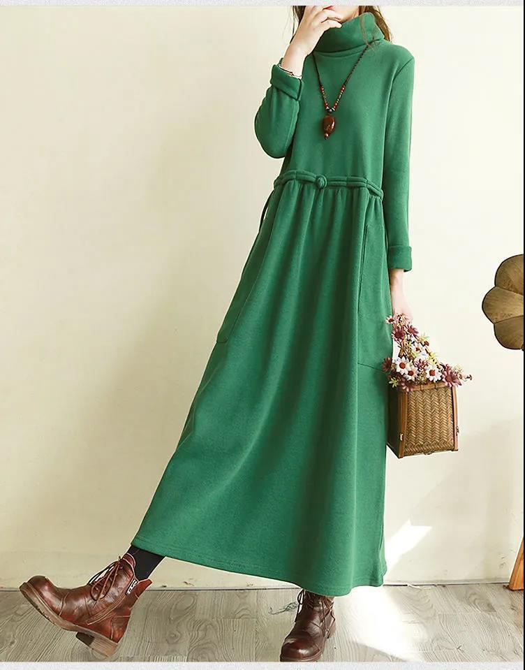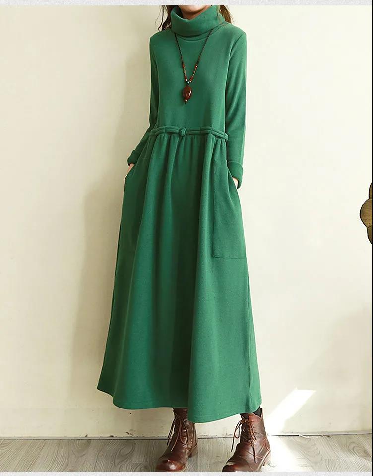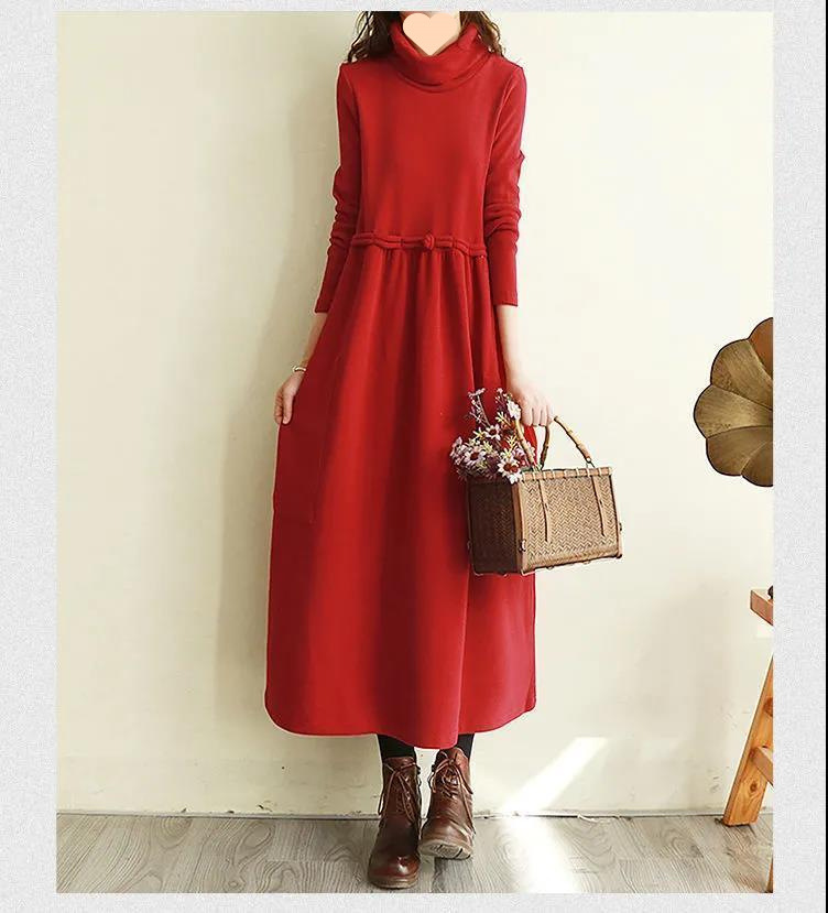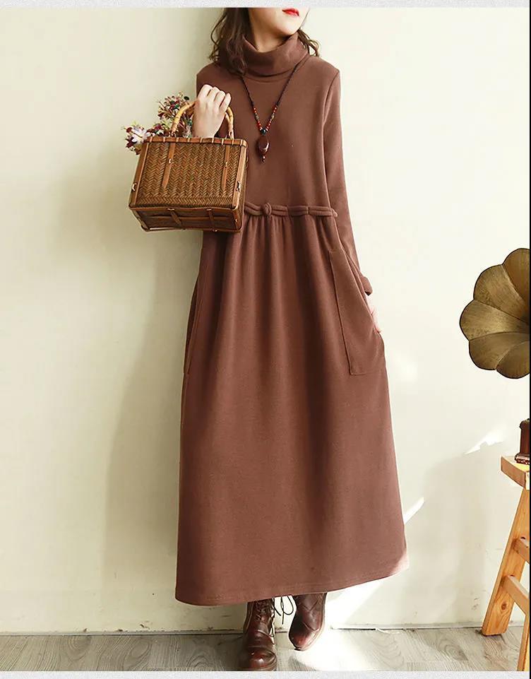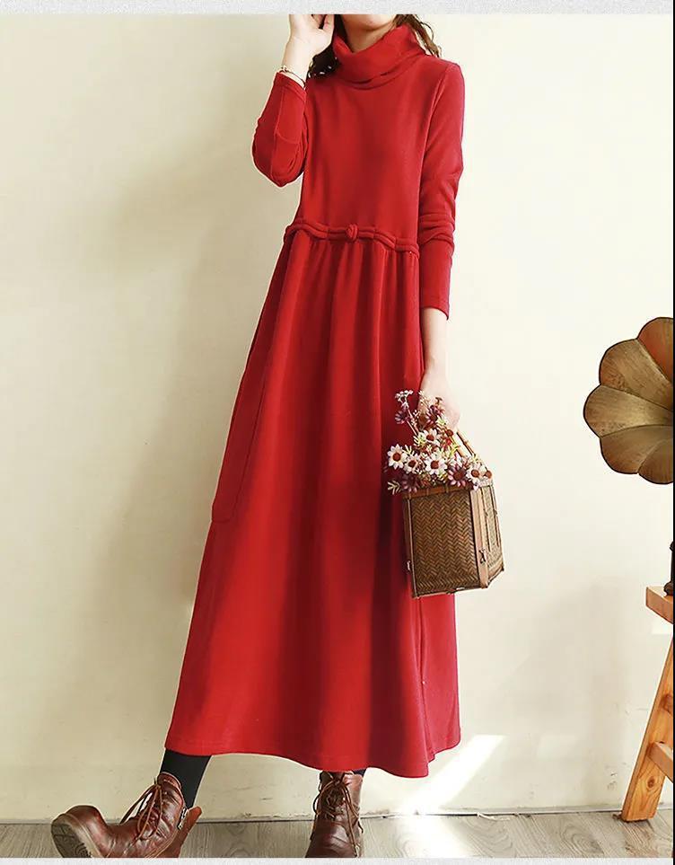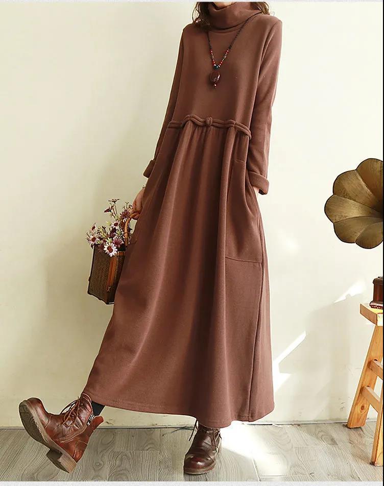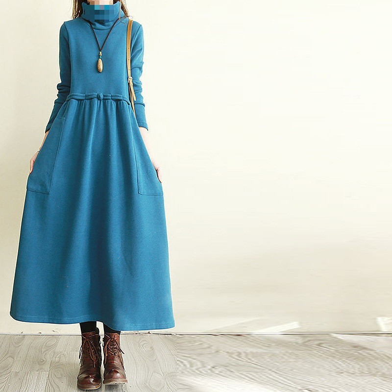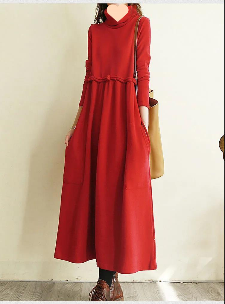 ワンピース マキシワンピース レディース ロングワンピース 秋冬 ハイネック ロングワンピ チュニック タートルネック マキシやけ 無地 ハイウエスト 微起毛 裏起毛ワンピース 防寒 保温 冬