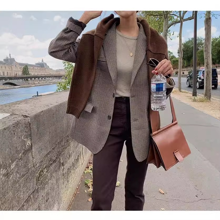 春新作 人気 スーツジャケット 日韓ファッション チェックスーツトップス レトロ ゆったり 百掛けアウター春 トレンチコート大きいサイズ ショートコート着痩せOL通勤 入園式 入学式 卒園式