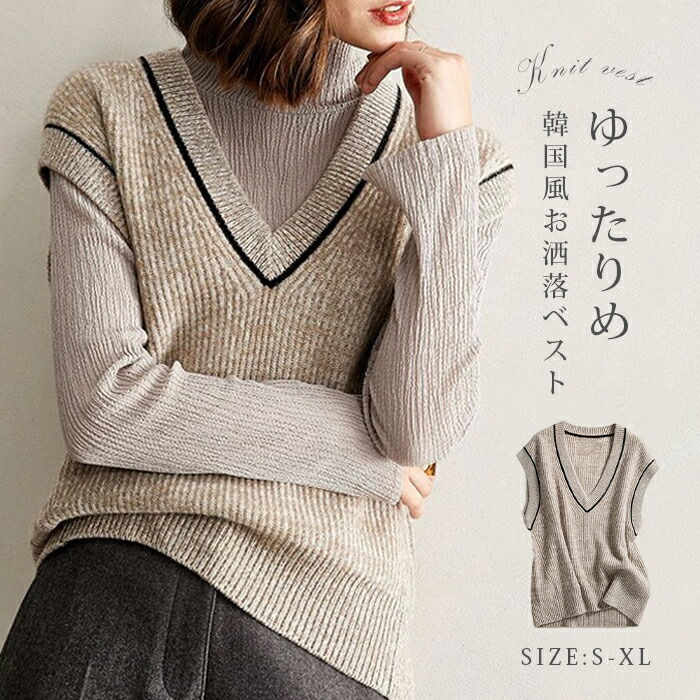 ニットベスト レディース ベスト Vネック トップス 無地 重ね着 定番 ニット カーディガン きれいめ ノースリーブ カジュアル 大人 かわいい シンプル 春 秋 冬 無地