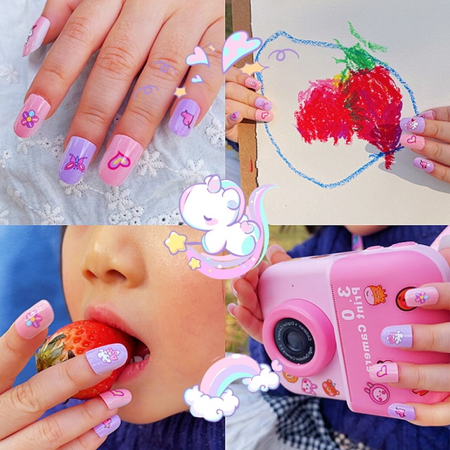 ネイル 子供用 ネイルチップ シヨート キッズコスメ 子供化粧品 ギフト プレゼント お誕生日 子供 小学生 娘へ フィンガーステッカー 無毒で無味のネイル