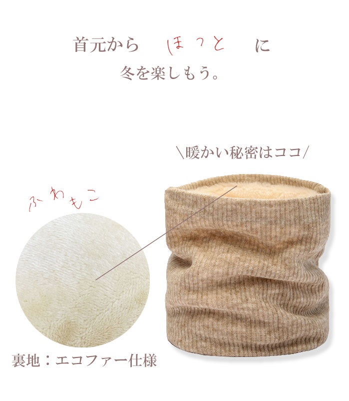 リブ編み ネックウォーマー レディース 裏地エコファー リブ ベージュ レッド ブラウン ブラック レディース 女性用 ユニセックス スヌード マフラー 温活 冷え取り 防寒